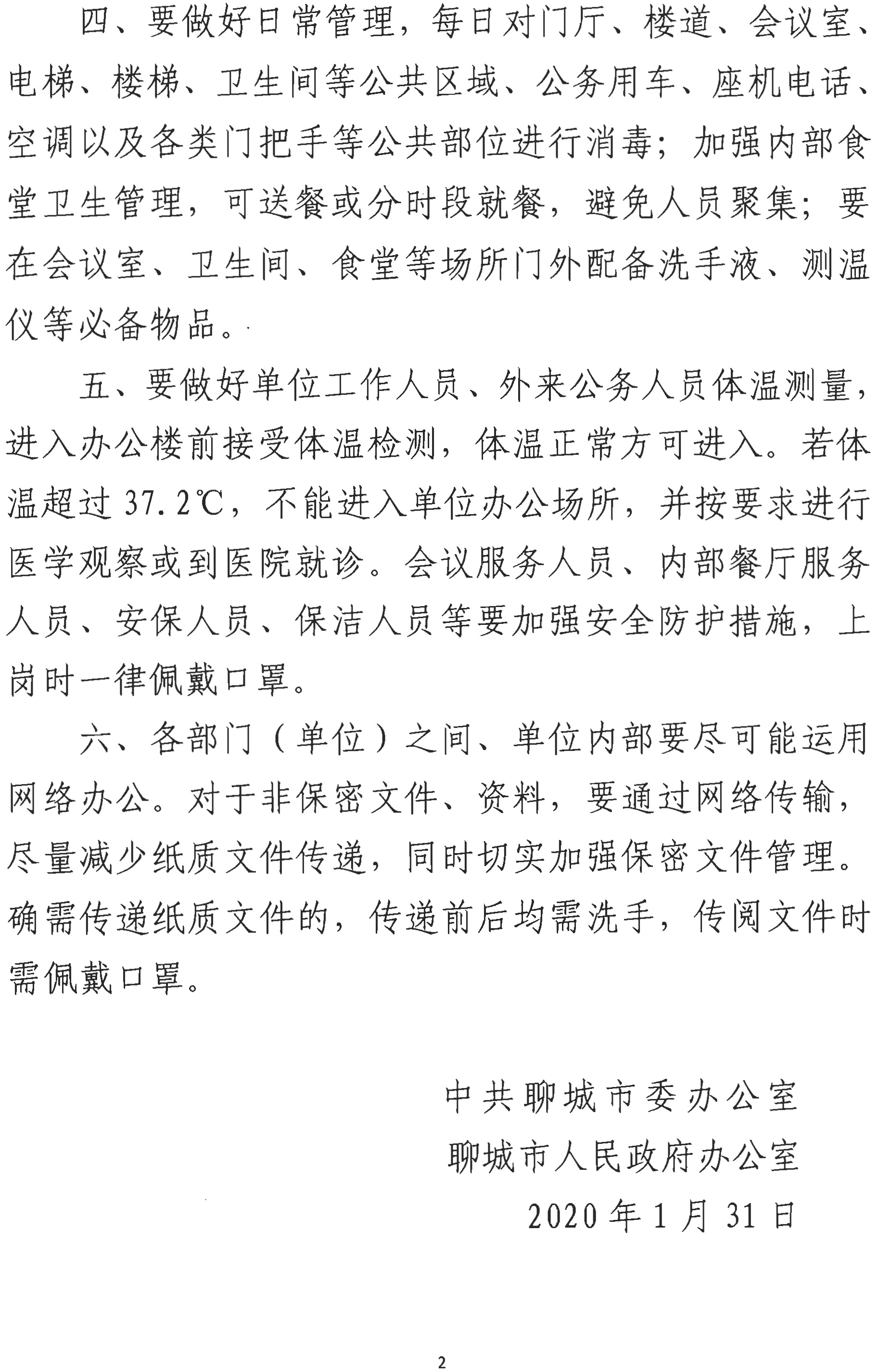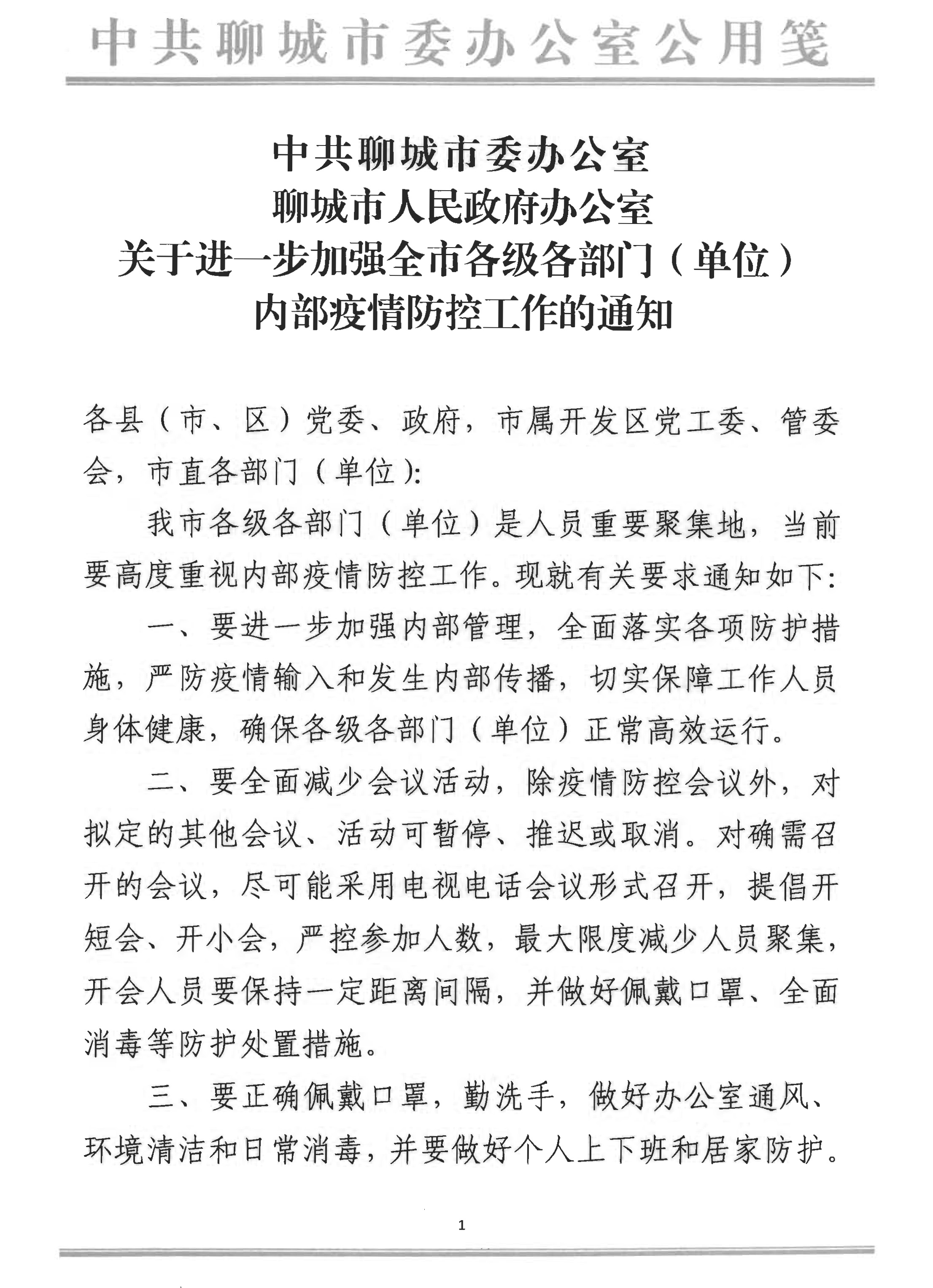 中共聊城市委办公室 聊城市人民政府办公室关于进一步加强全市各级各部门(单位)内部疫情防控工作的通知