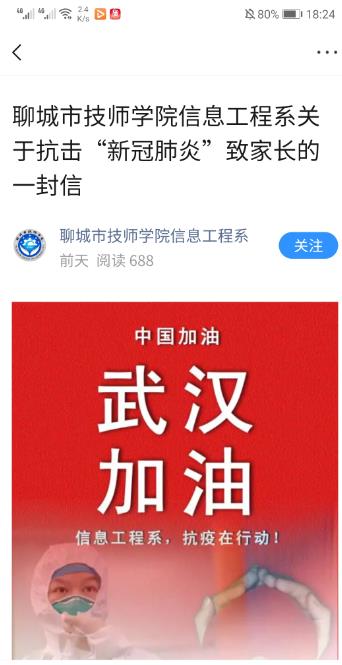 为贯彻落实中央、省、市及学院指示精神,信息工程系把疫情防控工作作为当前工作第一要务,第一时间成立了由系主任为组长的新型冠状病毒疫情防控工作领导小组。全员行动,认真落实各项防控工作措施 ,以必胜的决心打赢疫情防控阻击战!
