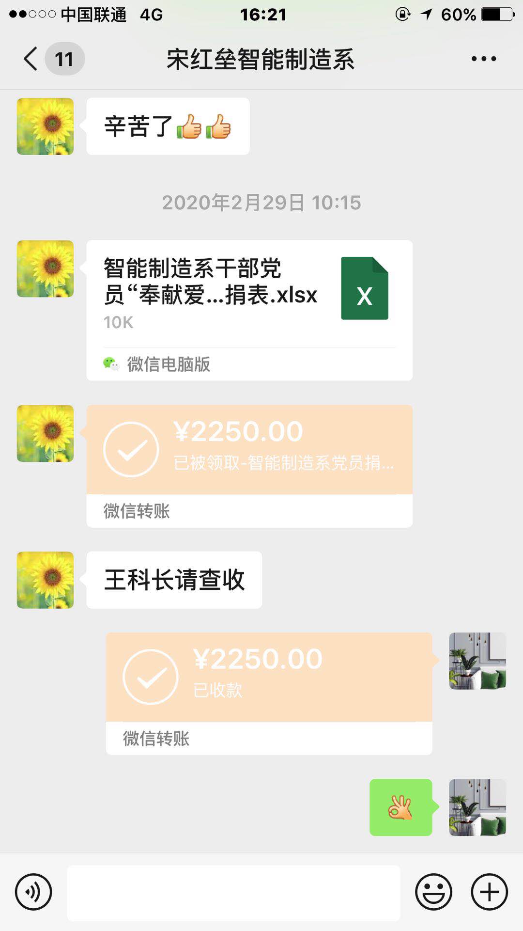 特别的捐赠,特别的情义。2月28日,为积极响应党中央对广大党员的号召,学院开展了一场特殊的主题党日活动,学院300余名在职党员为支持新冠肺炎疫情防控工作捐款,在特殊时期以自己的实际行动诠释了作为一名共产党员的责任和担当。广大党员通过微信转账等方式,仅两天时间再次募集到善款27000余元。