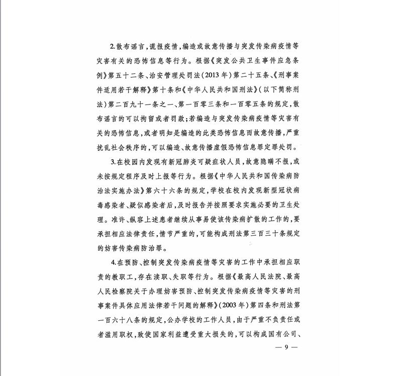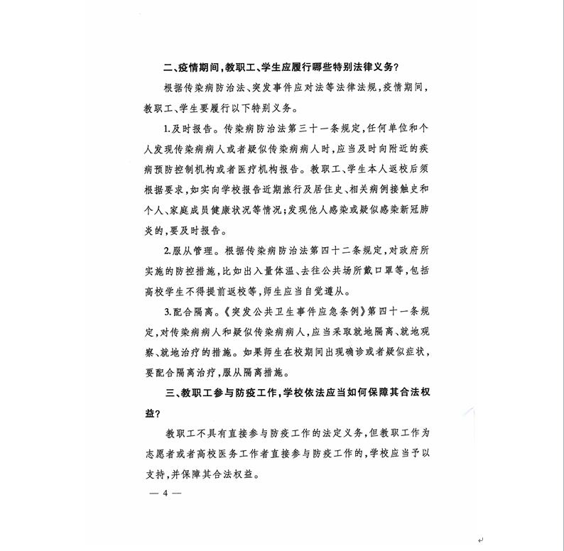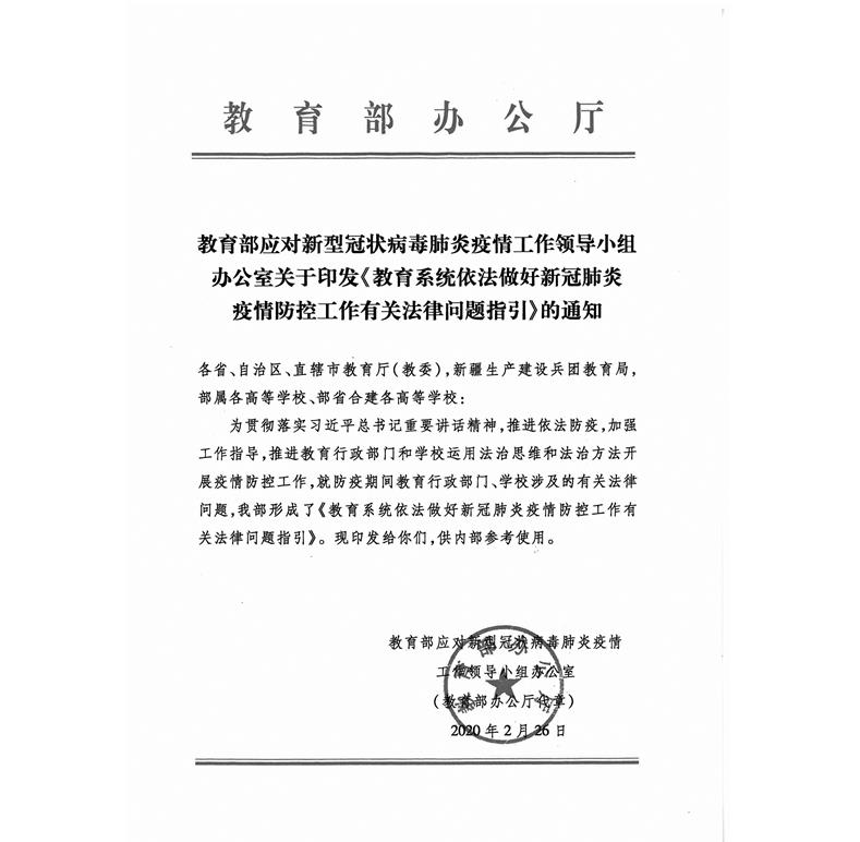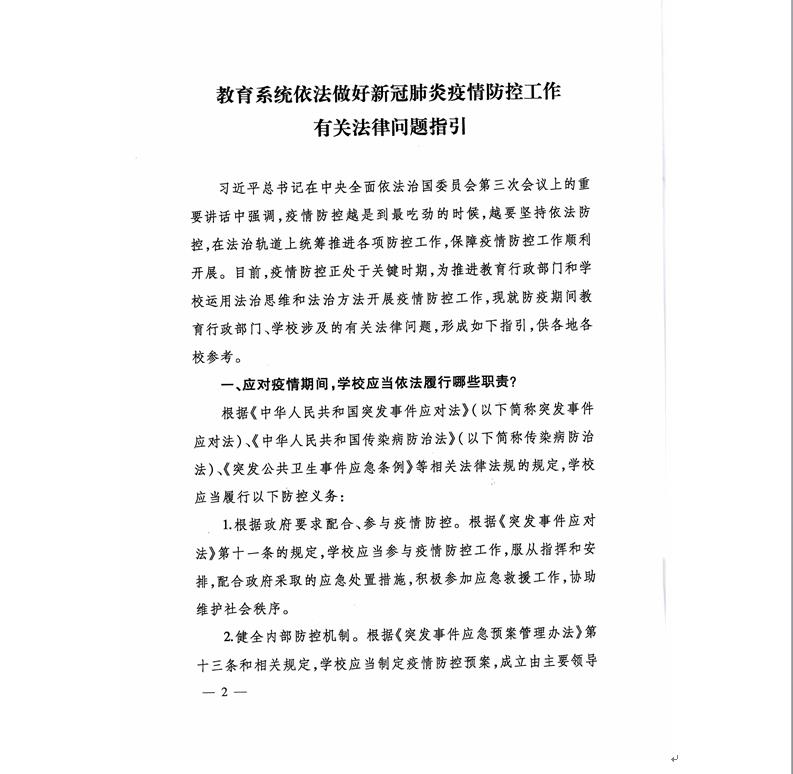关于印发《教育系统依法做好新冠肺炎疫情防控工作有关法律问题指引》的通知