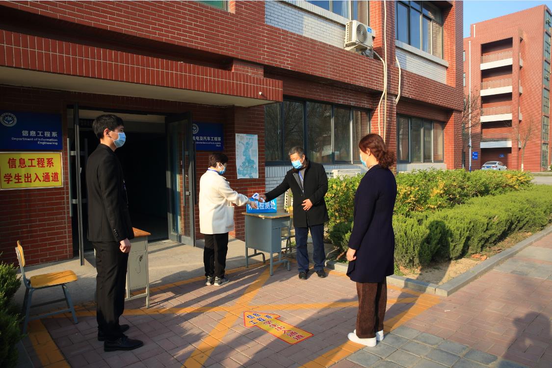 教学楼、宿舍楼入口处,设立体温检测抽检处,根据各系上课和住宿地点分别划定专门通道,避免路线重叠、交叉。在对全体学生晨、午、晚检测基础之上,对进入教学楼、宿舍楼学生按不低于10%比例抽检。对出现的异常情况,立即启动紧急预案,防疫专人、消杀人员按照预定分工,第一时间介入。