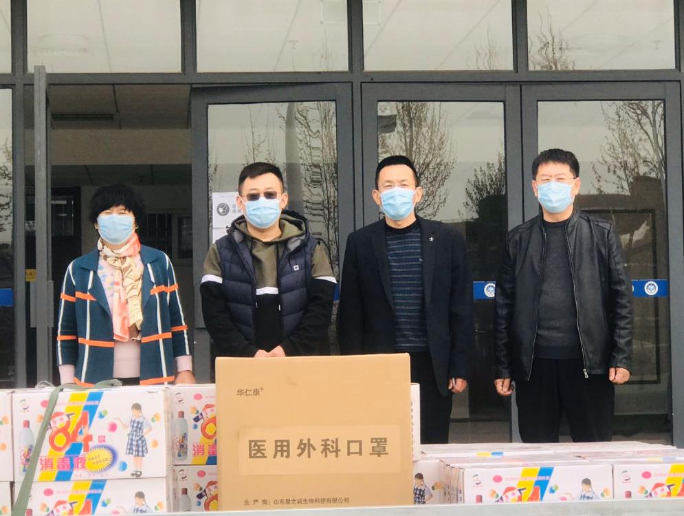 4月1日,泰安玉兴家纺有限公司经理侯超,从泰安驱车170公里赶到我院,爱心捐赠84消毒液100箱、医用口罩2000副等防疫物品,价值12700余元。