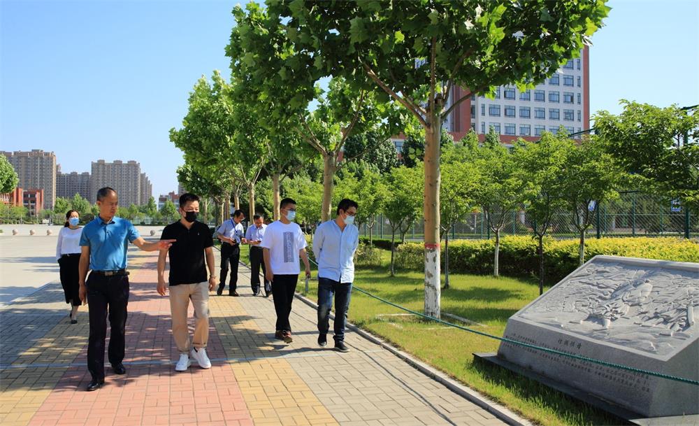 崔爱民一行首先来到孔繁森广场、雷锋广场,对我院注重德育教化、践行模范带动、突出志愿服务的育人思路给予高度评价。立足爱心湖畔,考察团与学院领导一起探讨交流国旗广场创意设计,共情打造红色文化校园经典。漫步孔子大道,大家一边欣赏品味道路两旁陈列的二十四孝故事艺术浮雕,共同感受传统文化带给校园环境的独特魅力。巍然屹立于学院南门的孔子塑像东西两侧,伴随道路延伸摆放着不同雕刻手法的艺术石雕,分别呈现励志故事、尊师重教两大主题创意,构成传统文化“长廊”,引发来访者的由衷赞叹。教学楼南侧的海棠园、樱花园等微型小游园吸引了考察团的兴趣,站在精致的小桥上,手扶栏杆,望前方林荫之下曲径通幽,胸中荡起无限诗意,惬意之情溢于言表。随后,考察团又来到工匠文化展示区,抬眼室外博物馆陈列的33台历史机床和矗立在道路西侧的12位中外科技伟人名匠塑像,来访团成员面露无限感慨,不时连连拍照,认为这种创意对激励学生积极进取、树立大国工匠情怀,具有潜移默化的促进作用。