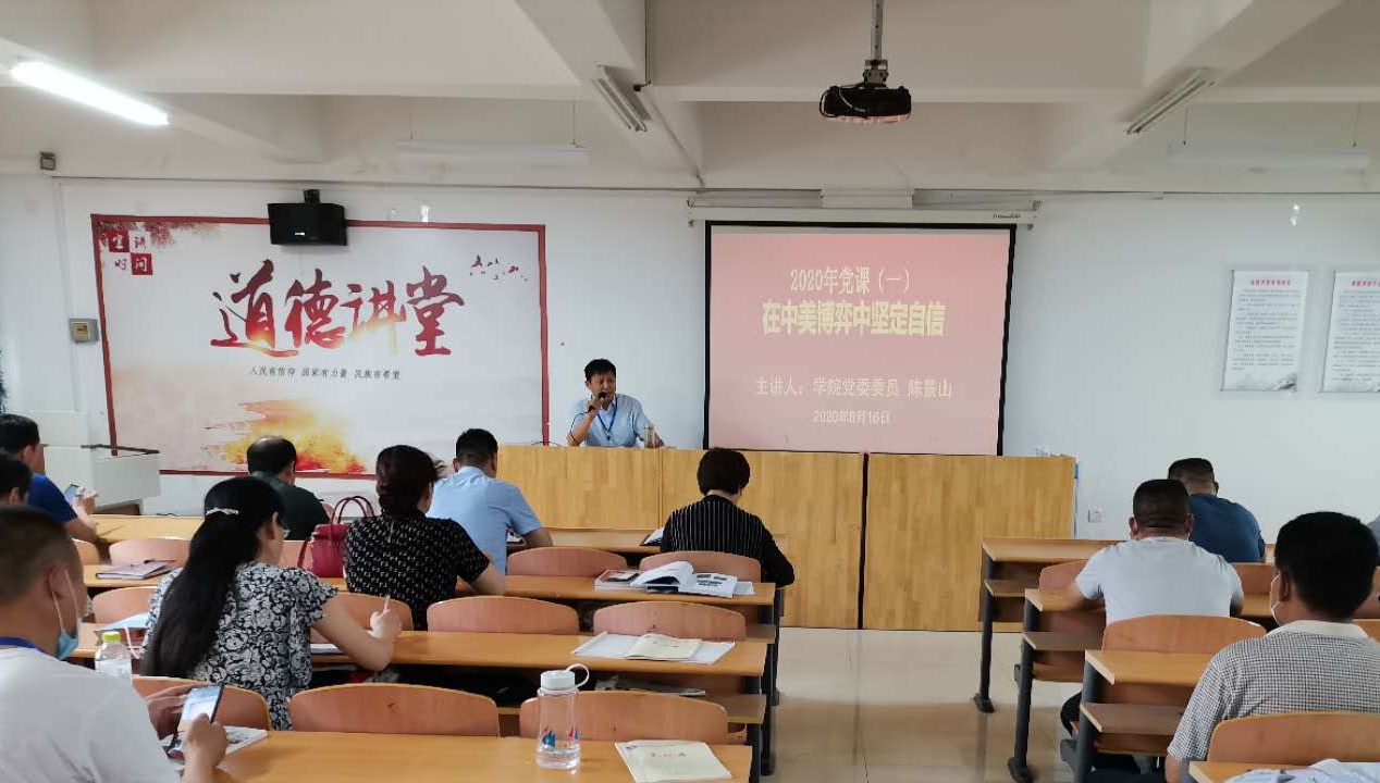 6月16日下午,学院党委委员陈景山“在中美博弈中坚定自信”为题,为院工会、总务处、城市建设系党支部全体党员讲授了专题党课。