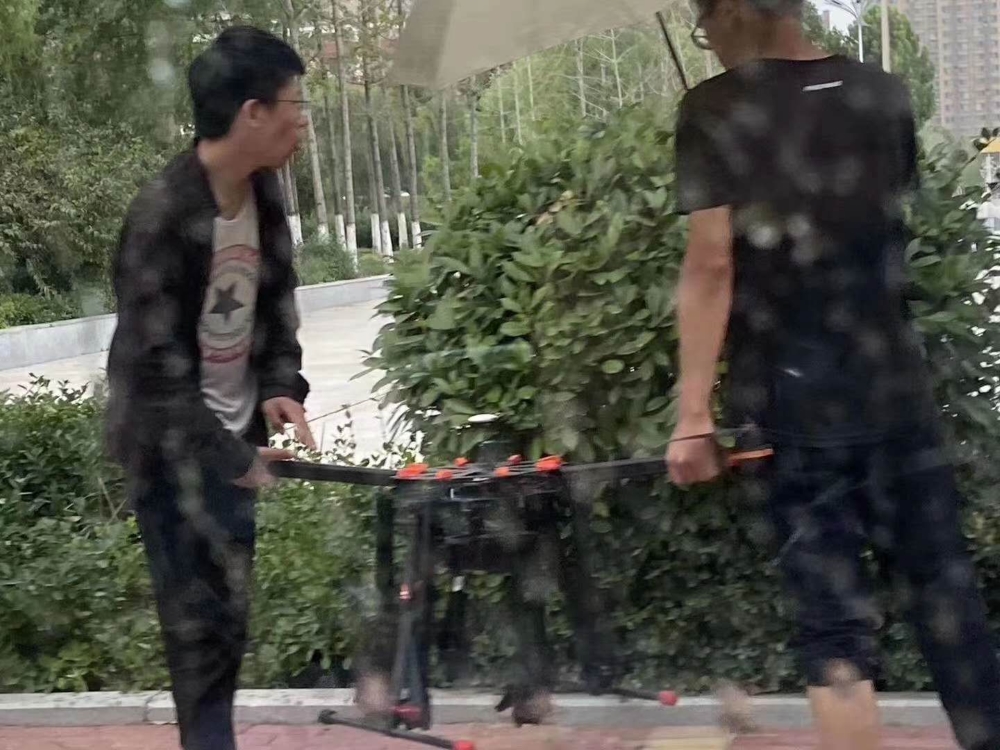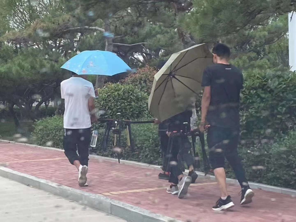 7月22日下午,一场小雨给炎热的夏季带来丝丝凉意,校园内出现了这样一幕:雨中,几位同学身穿湿漉漉的衣服,却把雨伞罩在无人机上方,护送训练设施行走在收工返回的校园小路上。