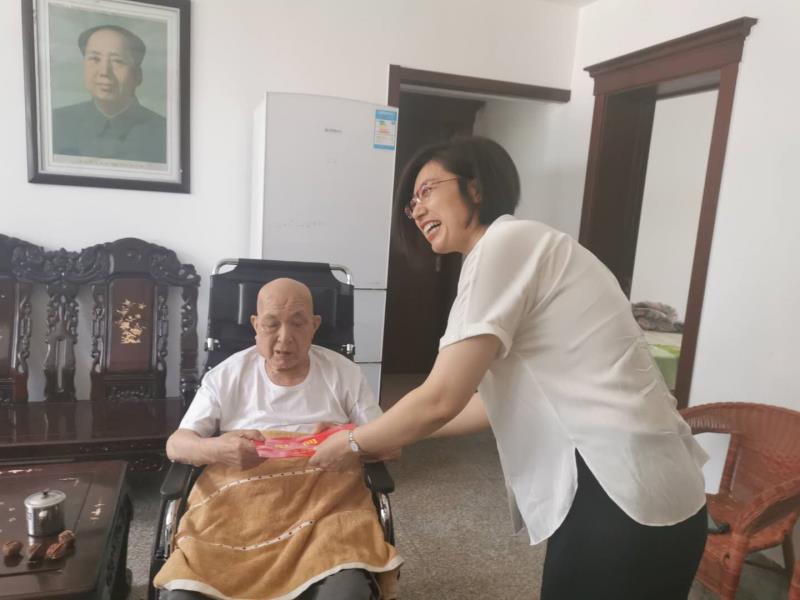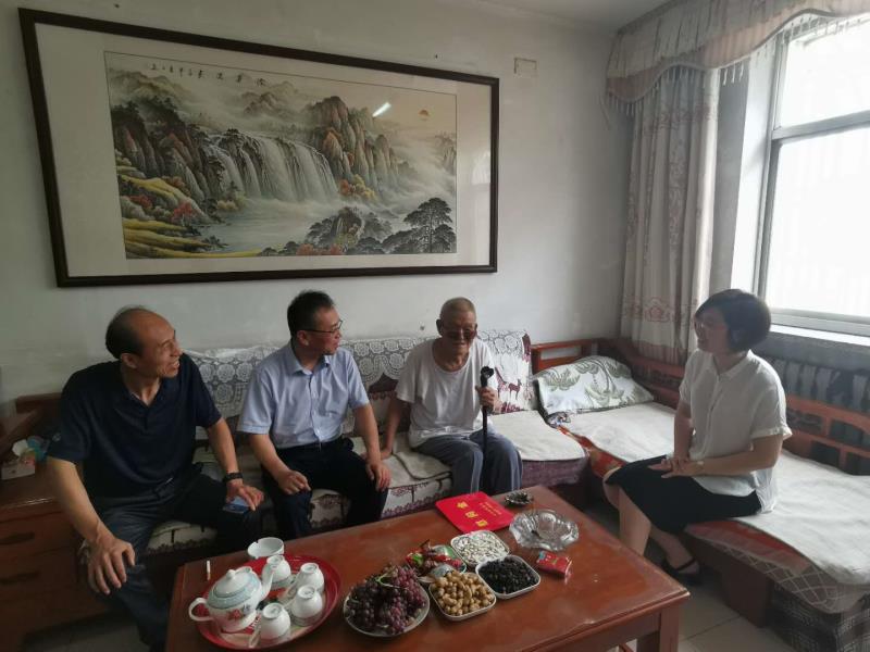 8月27日上午,为庆祝中国人民抗日战争胜利75周年,准确掌握老干部的生活状态、思想状况和所需所求,聊城市委老干部局主任刘晓静带领局相关工作人员,专门看望了我院参加过抗日战争的离休老干部张同岱同志和建国前参加工作的离休老干部魏言台同志,亲手将市委发放的慰问金送到老干部的手上,让老干部感受到了党的温暖。学院党委副书记徐公义,党委委员、组织人事处处长高绪斌陪同走访看望。