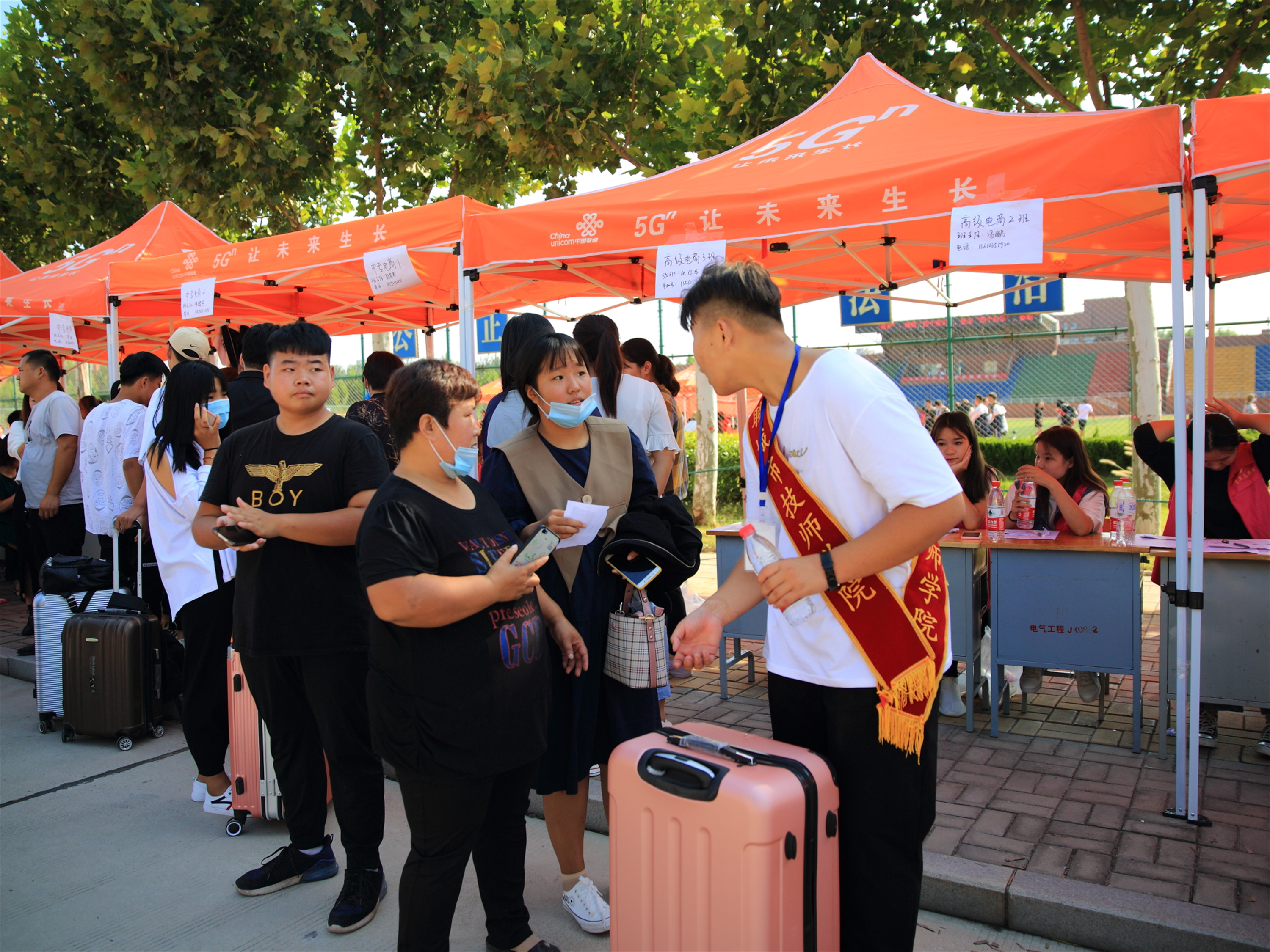 以孔繁森、雷锋、柳德占命名的各系学生志愿服务队成为现场最惹人注目的风景。一张张热情的笑脸、一句句亲切的问候,一项项贴心的服务,他们用真诚传递友爱,把热情和温暖送进每一位学子心田。课间,在校学生纷纷加入到志愿服务大军中,热心为新生入学提供帮助,或答疑解惑,或提拿行李,或协助领取生活用品、安置宿舍、办理餐卡等,校园内处处欢声笑语。