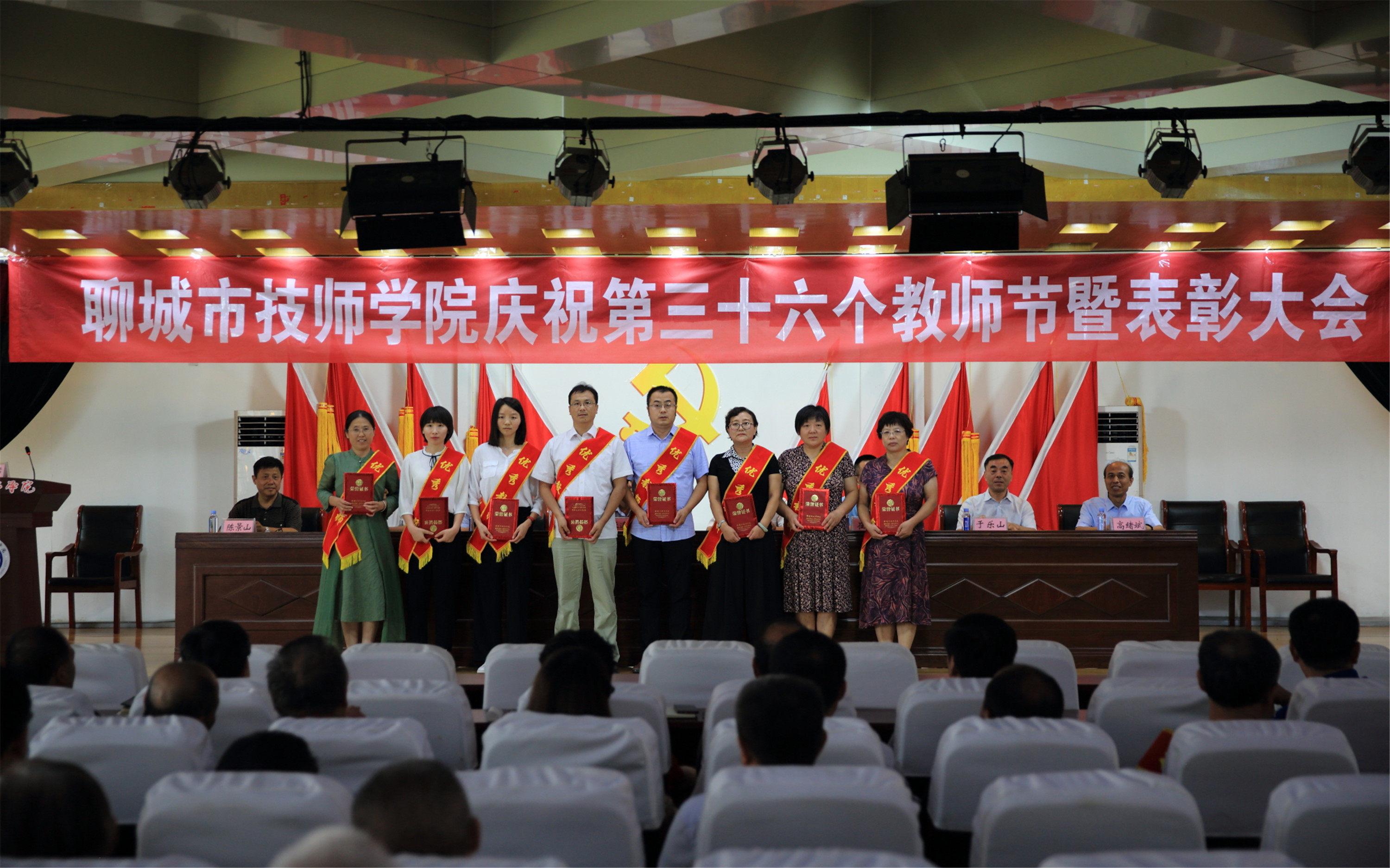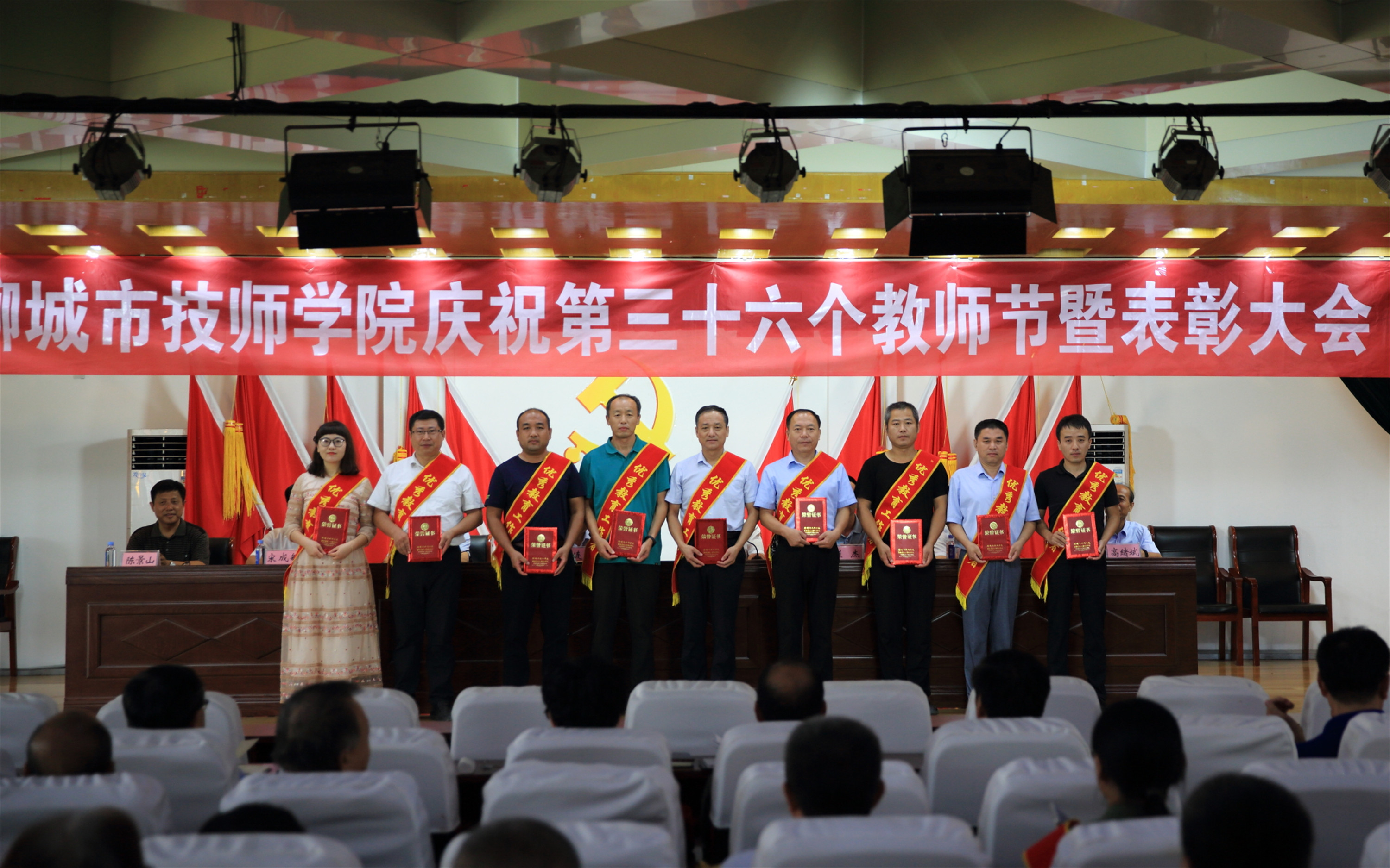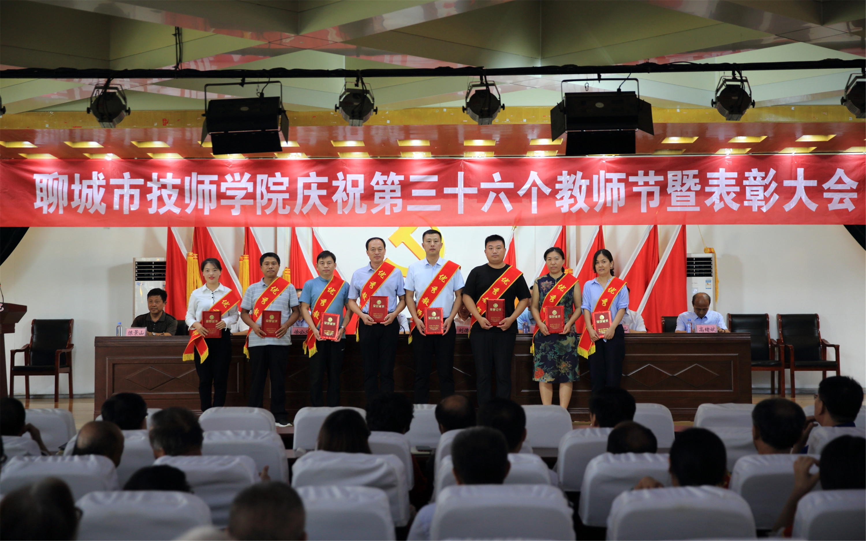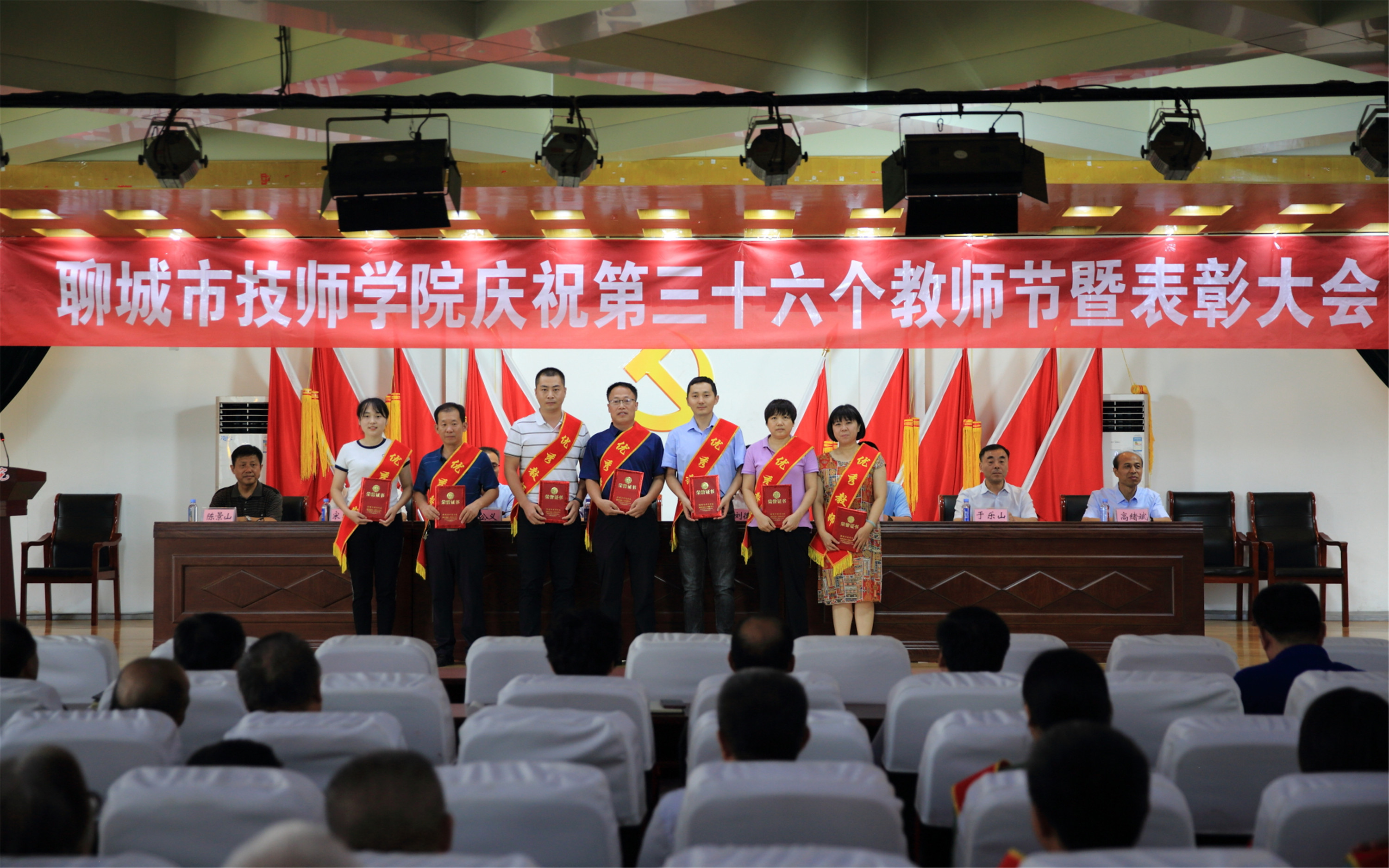 大会在庄严的国歌声中拉开帷幕,全体教师面向国旗进行了庄严宣誓。第46届世界技能大赛山东选拔赛获奖者热诚地向教师节献辞,表达了学子们对教师的深深感激、敬仰之情和学好知识、练好本领、以实际行动报答教师的坚定信心和决心。学院党委副书记徐公义宣读了关于表彰2019—2020学年度“优秀教师”“优秀教育工作者”的决定。学院领导向“优秀教师”“优秀教育工作者”分别颁发了证书。世界技能大赛指导教师、全国班主任大赛获奖者先后发言,展示了我院教师的敬业精神、职业操守和感恩情怀。