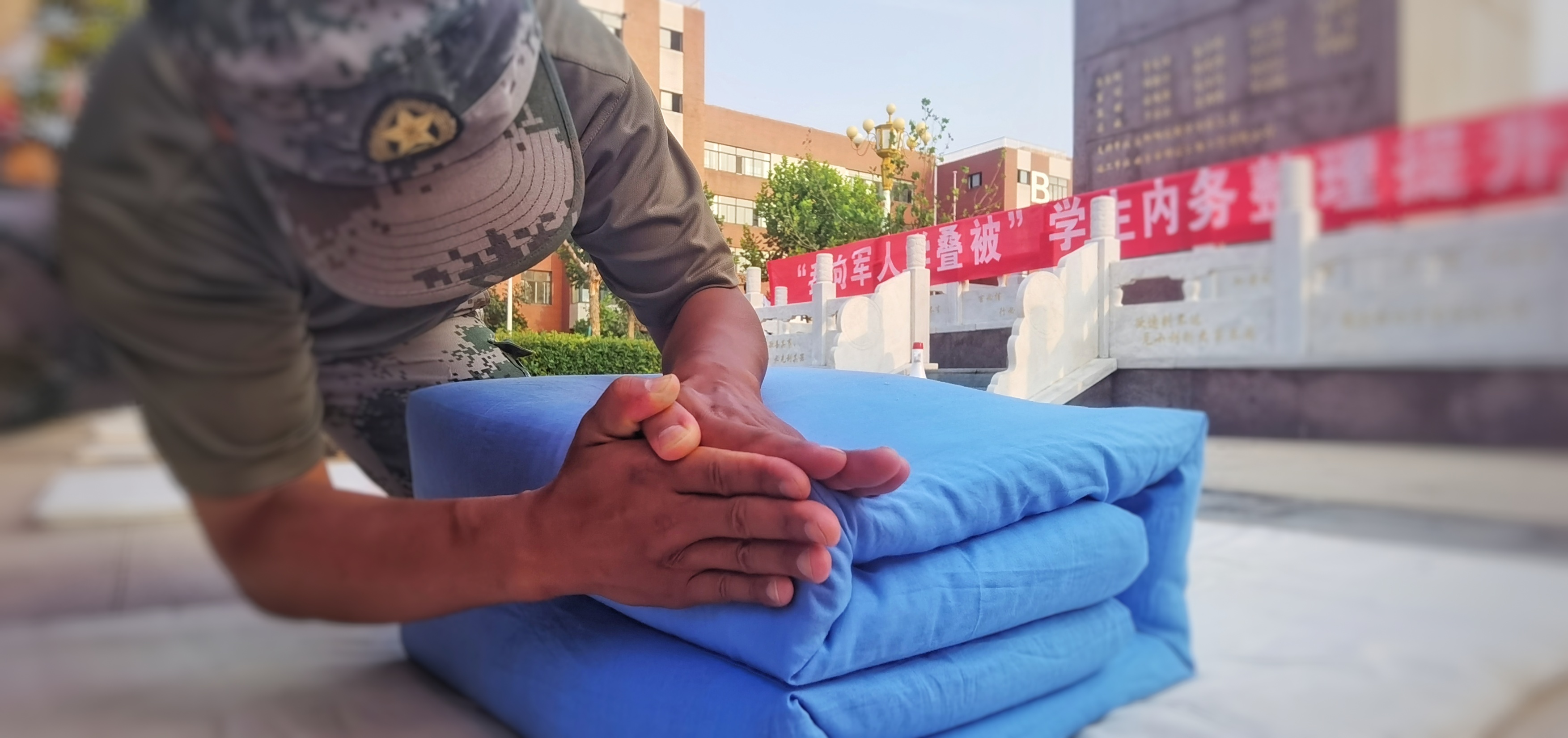 为了培养学生良好的生活习惯,创设卫生、文明、整洁的宿舍生活环境,养成严谨、规范的作风,丰富住校生课余生活,积极推进学生公寓6S管理的精致化,2020年9月24日下午,我院邀请承训教官代表在学院孔子广场北侧举行“我向军人学叠被”学生内务整理提升培训活动,并以此进一步规范宿舍内务管理的要求,为我院学生管理军事化奠定基础。