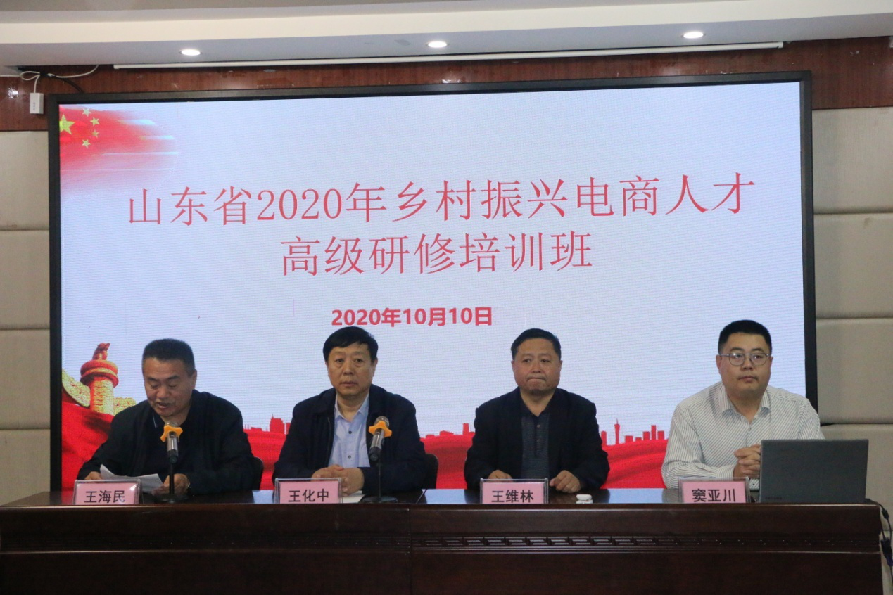 王化中介绍了学院基本情况。他指出,此次培训以“服务乡村振兴、助力脱贫攻坚”为主题,是贯彻落实山东省中长期人才发展规划纲要的重要举措,是培养专业技术人才的重要途径,是专业技术人员继续教育工作的重要抓手。实施乡村振兴战略,是党中央的重大决策,农村电商已成为乡村振兴、脱贫攻坚的有力武器。培训班的举行,就是要培养一批有文化、懂技术、会经营的高端农村电商人才,以“头雁”效应带动农村电商人才队伍规模质量全面提升。