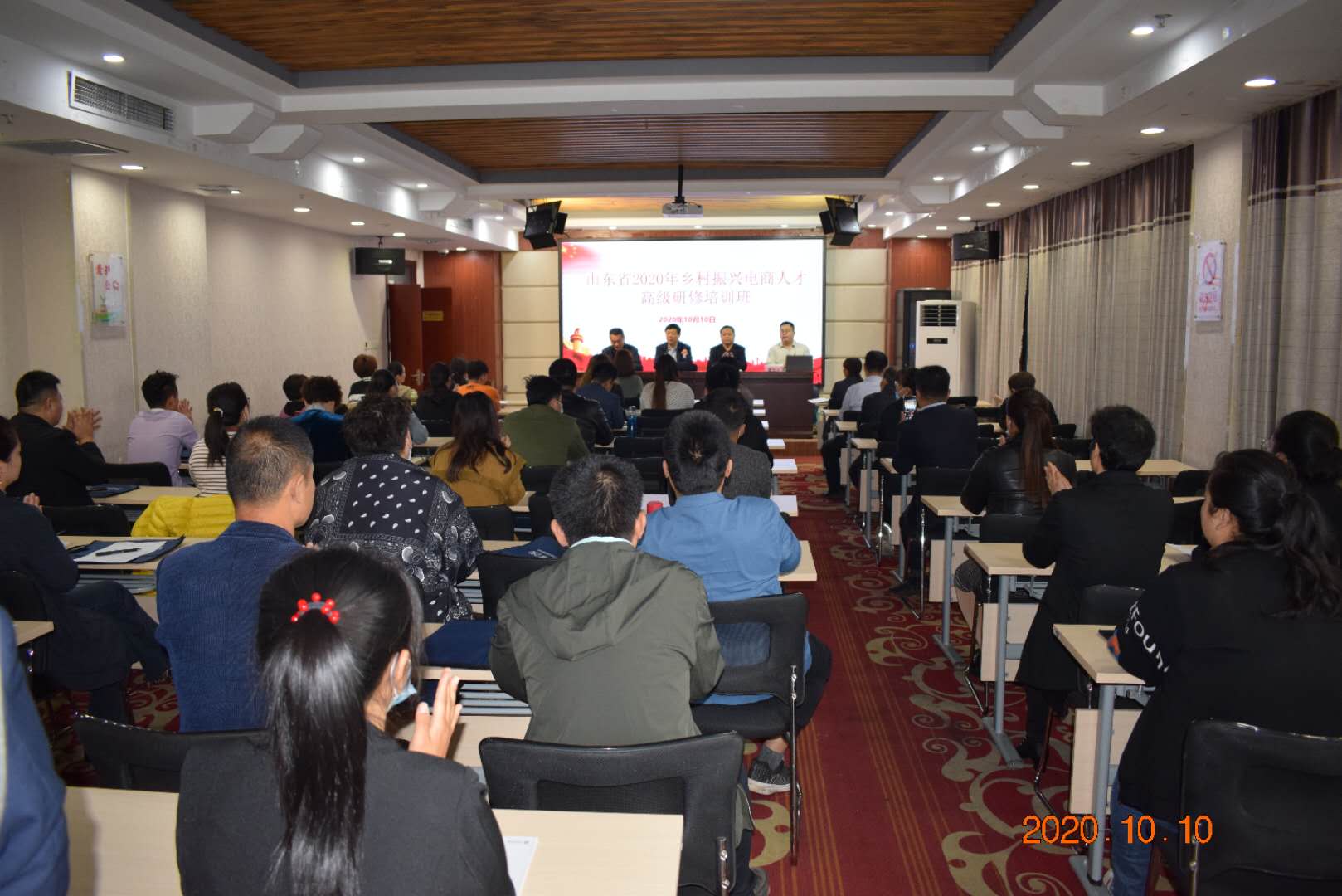 2020年10月10日上午,由聊城市人力资源和社会保障局主办、聊城市技师学院承办的“山东省2020年乡村振兴电商人才高级研修班”在学院培训中心开班。学院党委委员、副院长王化中,培训部主任王维林,经济管理系主任王海民及来自山东省各地市的农村电商业务的带头人、职业院校电商专业学科带头人50余人,参加了开班仪式。