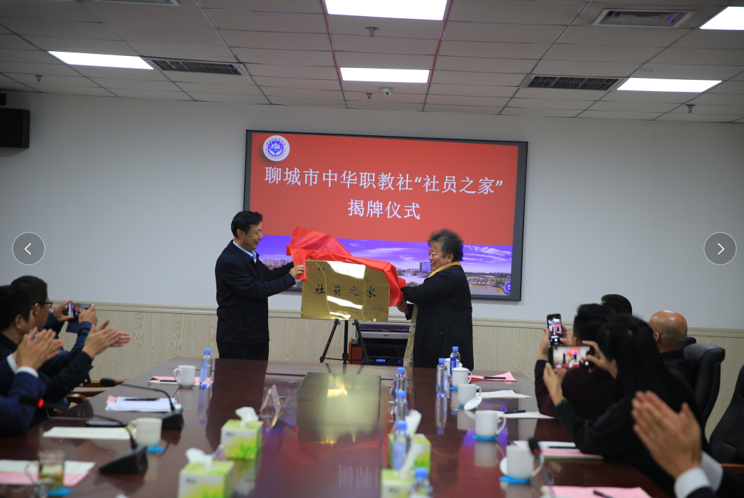 10月25日下午,中华职教社在聊城市技师学院隆重举行“社员之家”揭牌仪式。聊城市中华职教社主任张广霞与学院党委书记张连臣共同为中华职教社“社员之家”揭牌。市中华职教社副主任李超雪,副秘书长修桂芳,民建聊城市委副主委曹长俊,民建聊城一支部主委刘磊,民建聊城综合支部逯仁义,民建聊城五支部副主委刘登立,学院副书记、院长刘德云、党委副书记徐公义及有关部门负责人出席仪式,仪式由学院党委书记张连臣主持。
