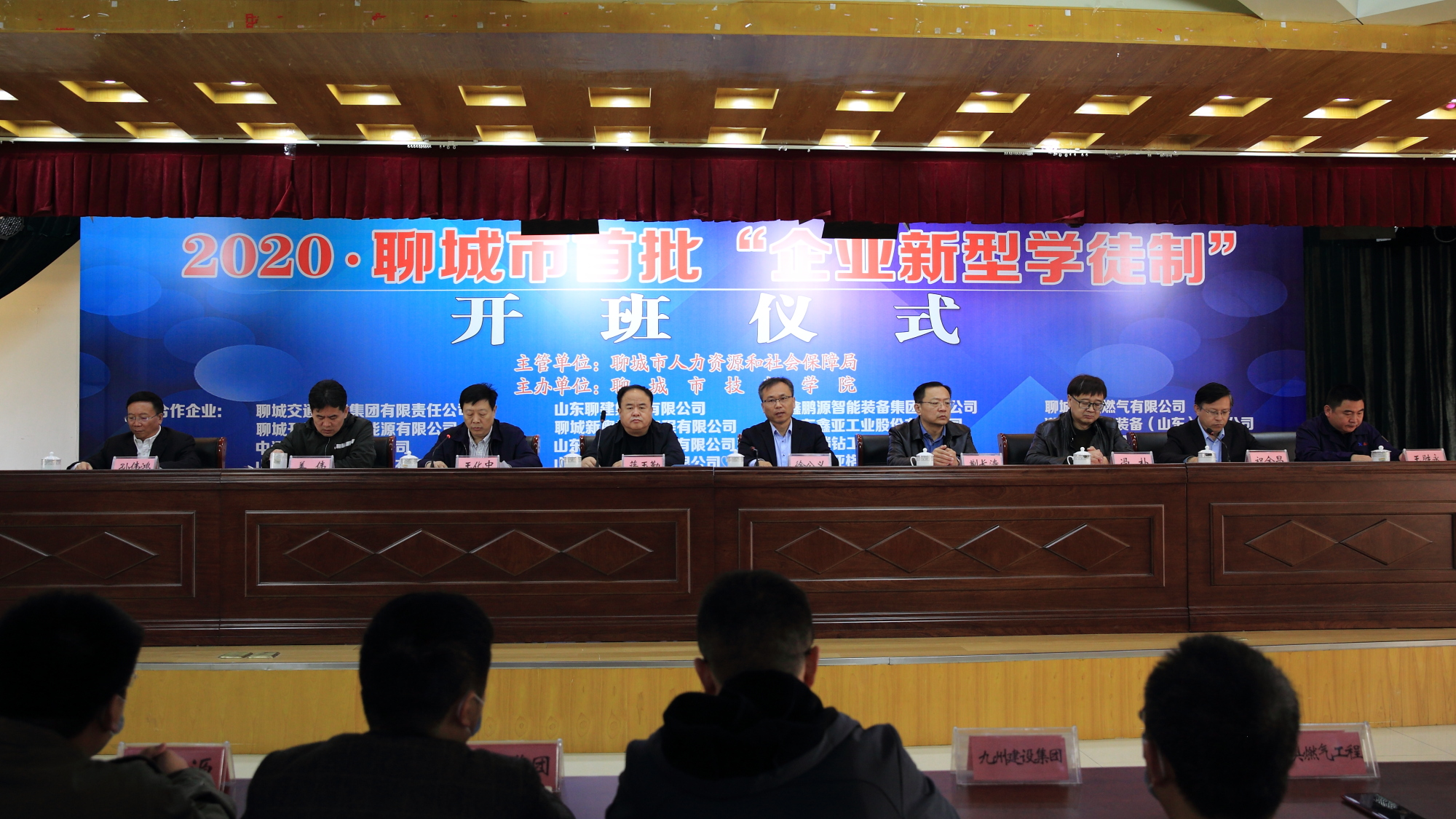 2020年11月6日上午,聊城市技师学院2020企业新型学徒制开班仪式在勤业楼五楼学术报告厅隆重举行。聊城市人才交流服务中心副主任蒋玉勤,市人力资源和社会保障局职业能力建设科科长姜伟,聊城市技师学院党委副书记徐公义,市技师学院党委委员、副院长王化中,聊城交运集团、新奥燃气、聊建集团等大中型企业领导、企业导师和学员参加了开班仪式。