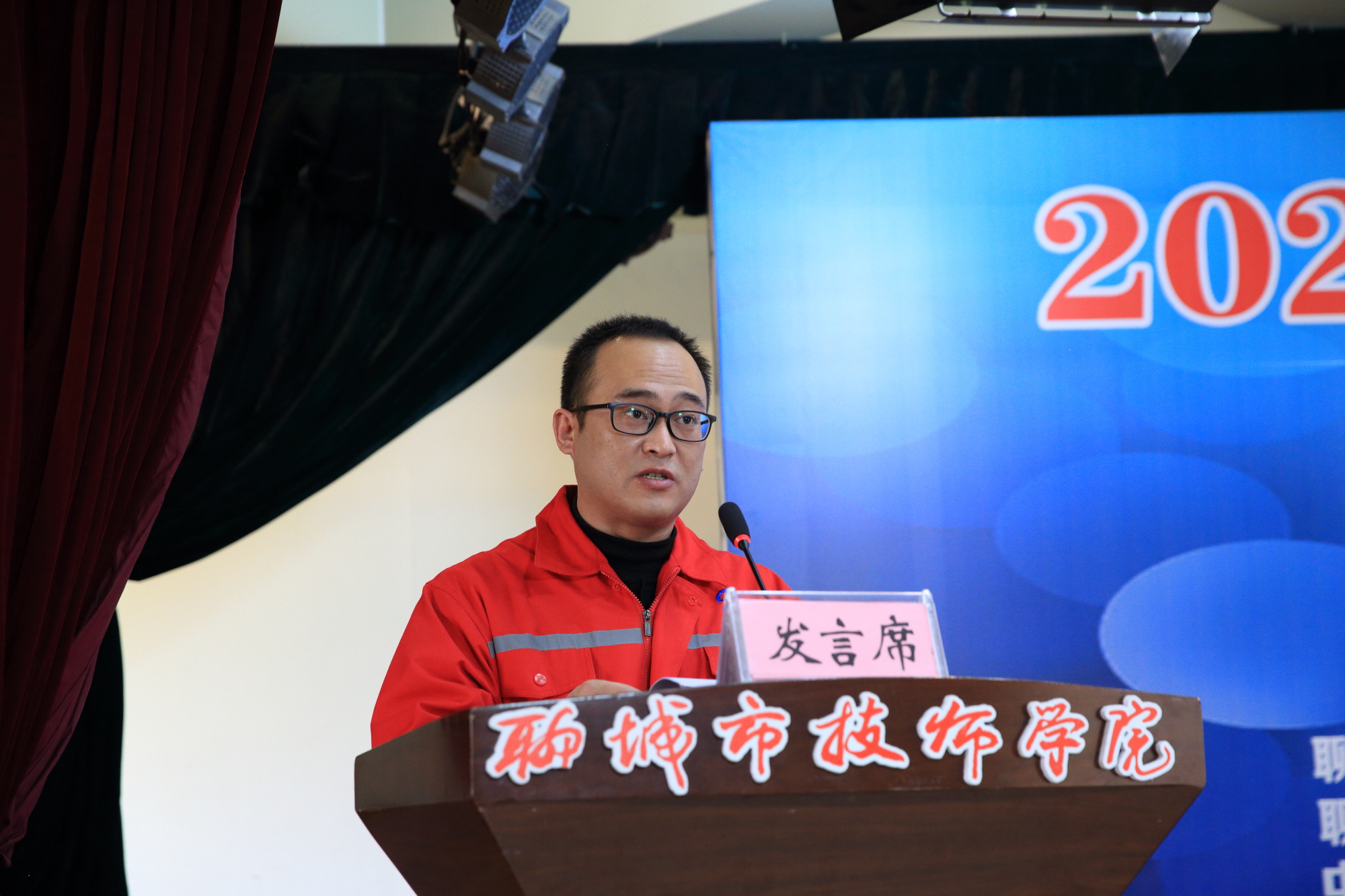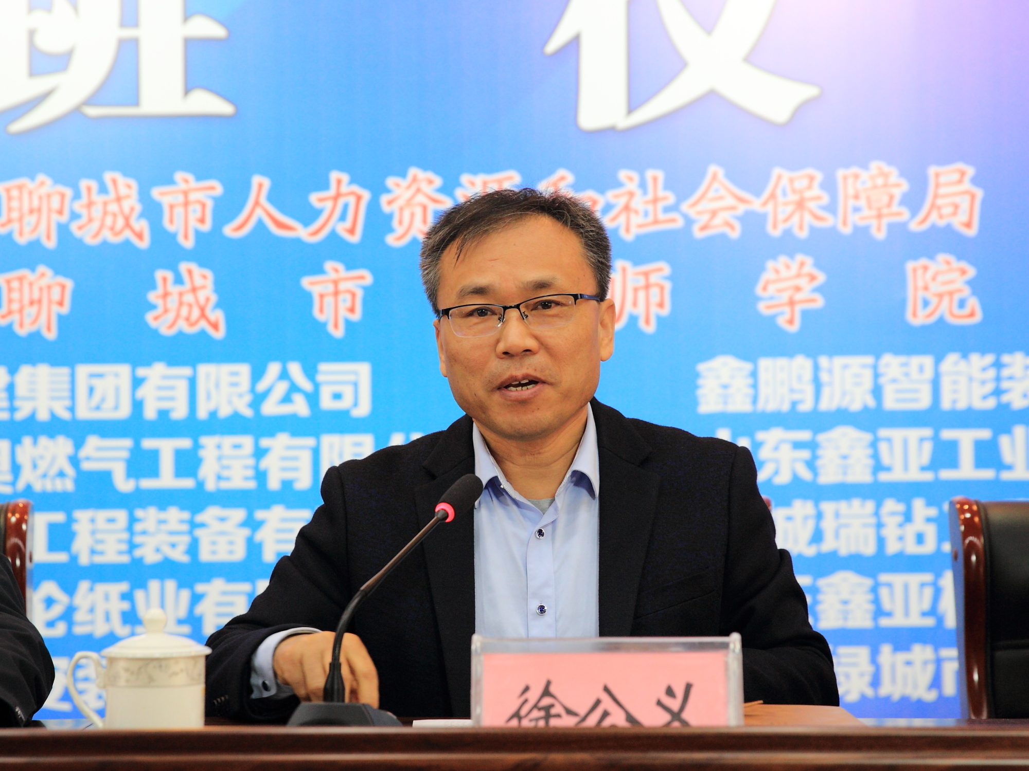 徐公义在致辞指出,聊城市技师学院是国家级重点技工院校、国家职业教育改革发展示范校,教学仪器设备总值1.5亿元,开设有32个专业,在校生1万人,年培训社会各类人员2万人次以上,具有雄厚的师资力量。学院高度重视企业新型学徒制工作,认真贯彻落实《聊城市企业新型学徒制实施办法》等相关文件精神,坚持从企业生产实际出发,从企业人才需求出发,主动深入企业,精准施策,建立学校和企业对接,教学系部和生产车间对接,学校教师和企业导师对接“三对接”机制,确保人才培养计划准确。大力弘扬新时代工匠精神,充分发挥和利用学院优势资源,采取灵活的教学方式提高职业技能培训的针对性、有效性,使学员掌握新技能、增长新本领,使校企合作更加紧密,培养出企业真正需要的技能人才,共同助力聊城新旧动能转换、产业转型升级。