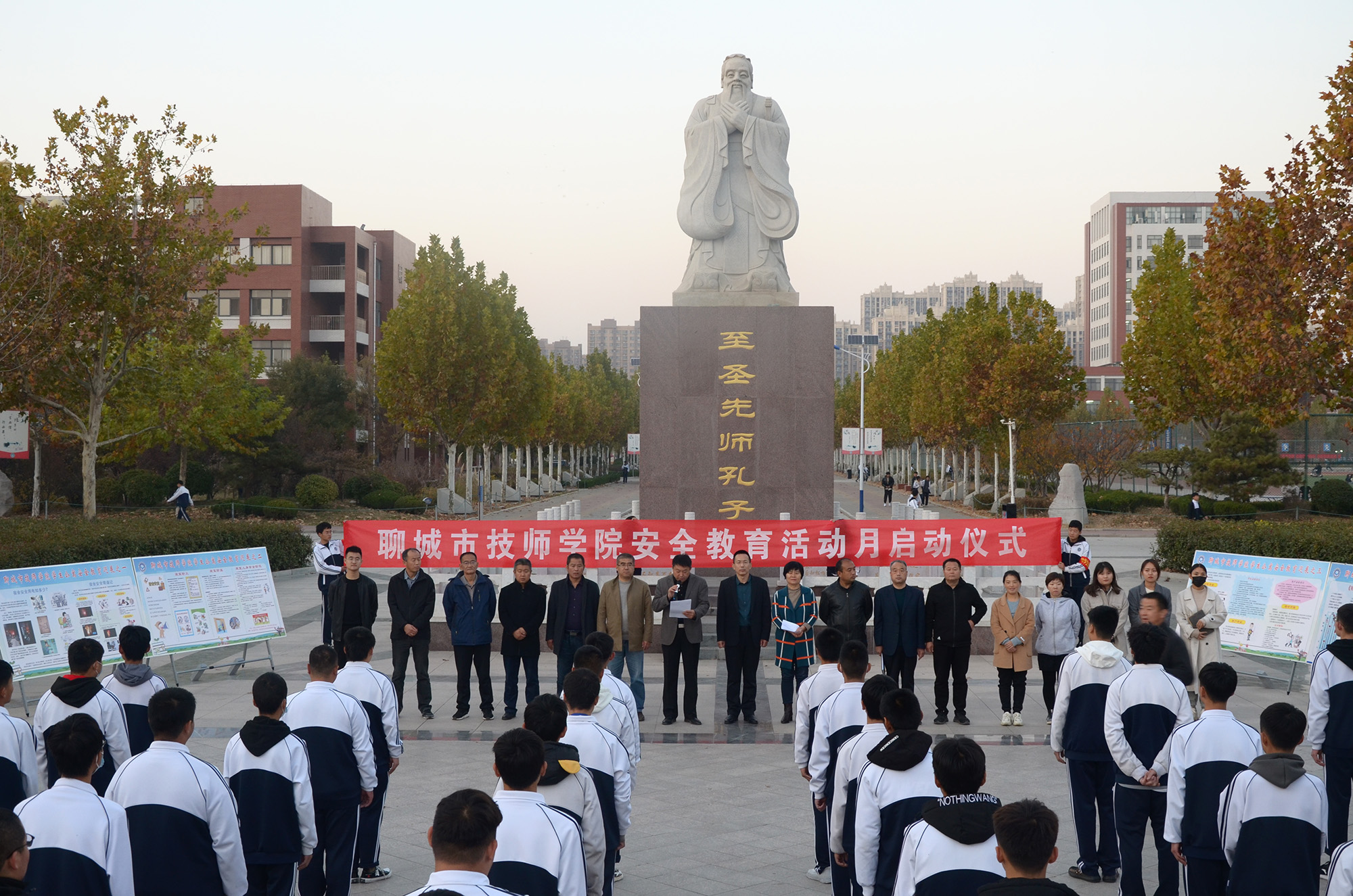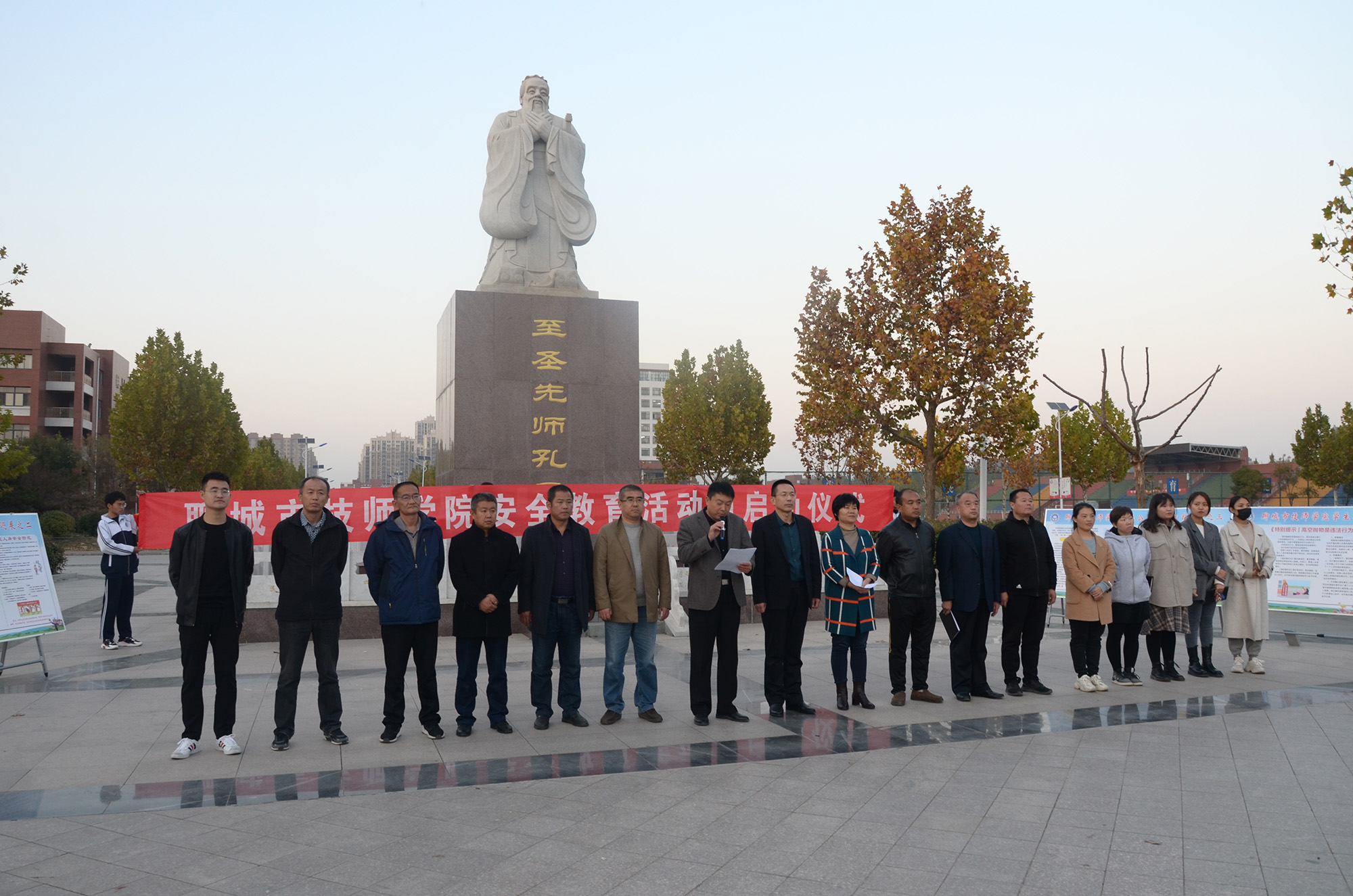为认真落实学院校园安全“思想要再重视,责任要再明确,排查要再深入,教育要再强化,管理要更严格,作风要更务实”要求,进一步加强学生安全教育和管理工作,强化学生安全意识,形成“人人讲安全、时时想安全、处处要安全、事事都安全”的良好校园氛围,11月9日学院“安全教育月”启动仪式在学院孔子广场隆重举行。学院党委委员、副院长崔杰,学生工作处处长王玉梅、保卫处处长孙金生及各系(院)学管副主任、团总支副书记及各系学生代表200余人参加了仪式。本次仪式由学生工作处处长王玉梅主持。