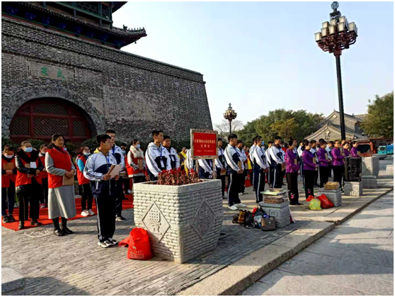 11月12日,汽车工程系教师叶慧带领该系21名学生来到光岳楼下,参加由聊城市国学研究传播与促进会组织的“历史文化古城建设---经典诵读活动”。