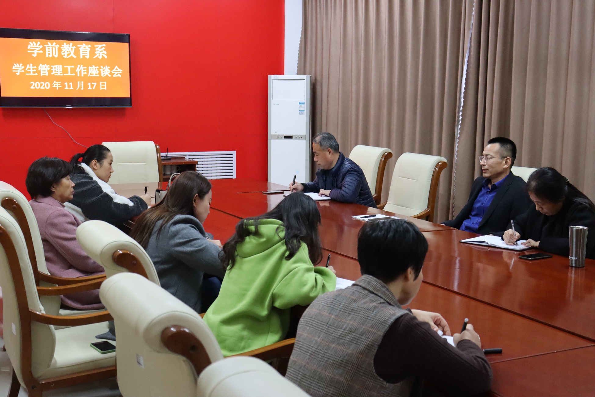 11月17日下午,学前教育系学生座谈会在后勤楼会议室举行。学院党委委员、副院长崔杰、学前教育系主任王春红、副主任李钧及新生班主任进行了交流和座谈。