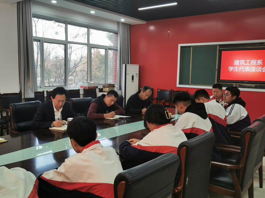 11月20日下午,学院党委副书记、院长刘德云到建筑工程系召开学生代表座谈会。建工系副主任黄玉果、党委办相关人员及本系学生代表参加会议。
