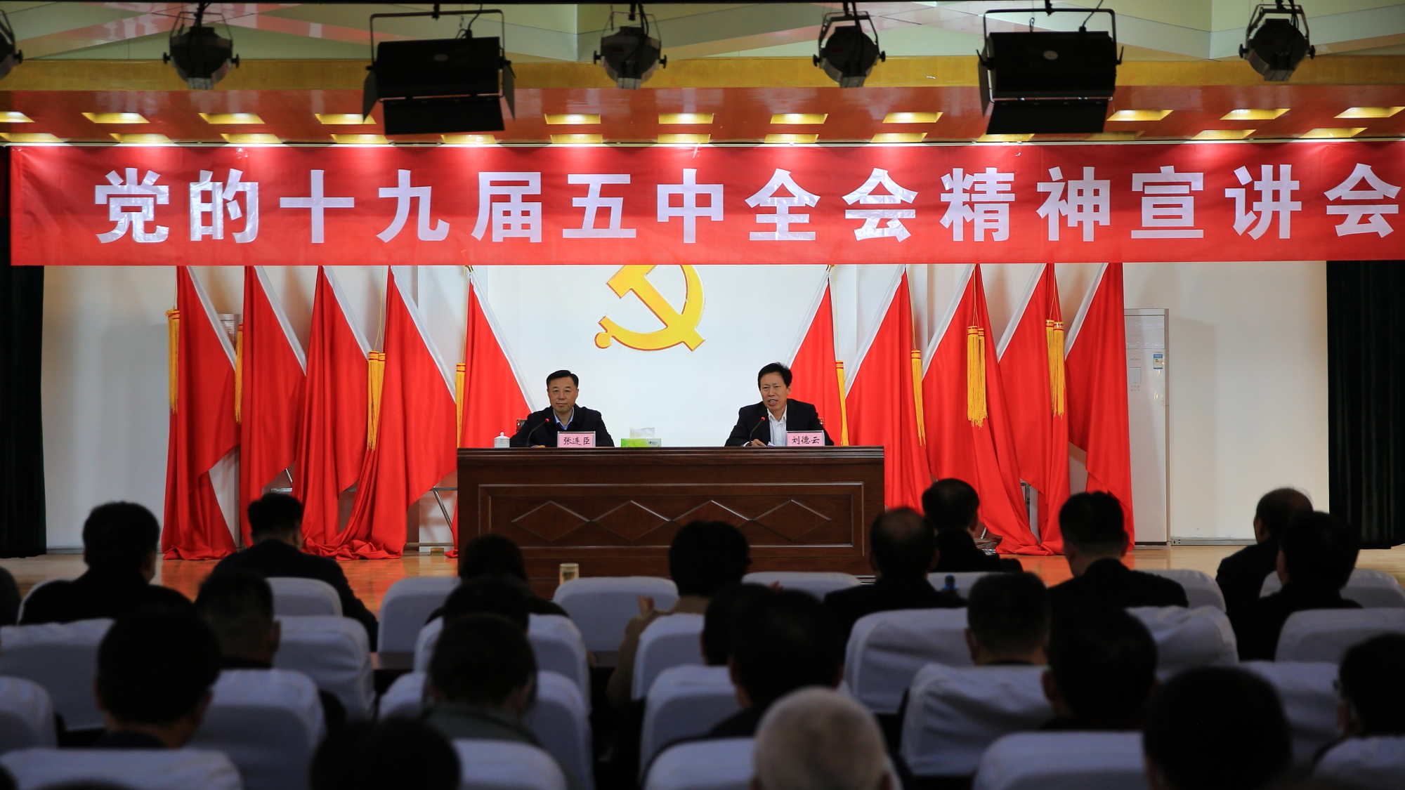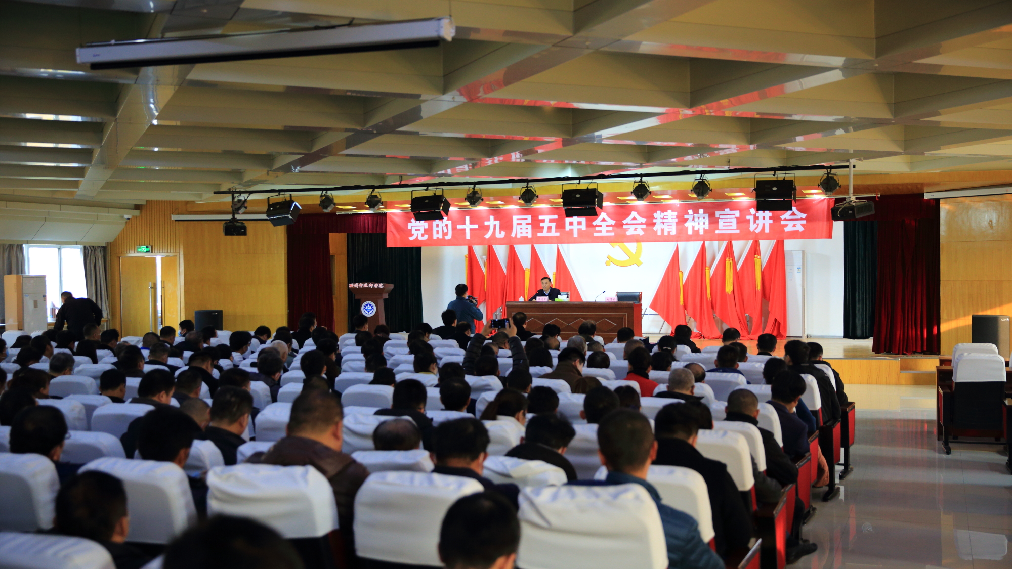 11月27日下午,学院党委书记张连臣在勤业楼学术报告厅宣讲党的十九届五中全会精神。党委副书记、院长刘德云主持宣讲会。领导班子成员、副科级以上干部及党员近400人聆听了宣讲会。