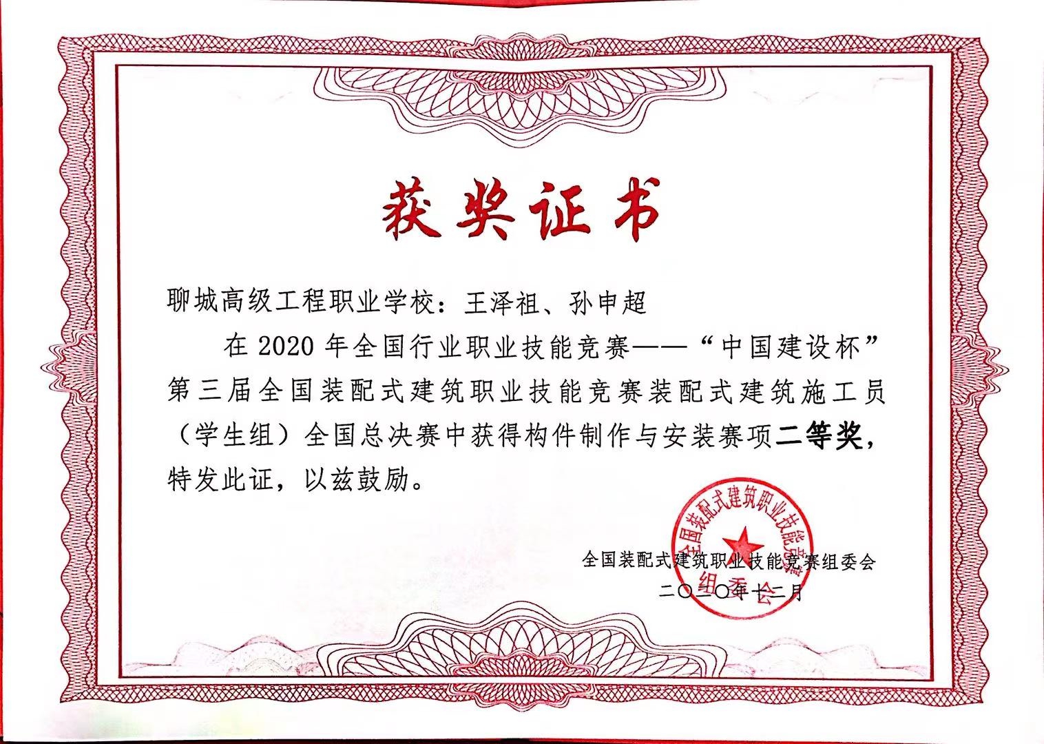 12月5日上午,2020年全国行业职业技能竞赛—“中国建设杯”第三届全国装配式建筑职业技能竞赛装配式建筑施工员赛项(学生组)全国总决赛在河南建筑职业技术学院举行,本次比赛构件制作与安装赛项有来自全国的本科、高职、中职共146支代表队参加,经过激烈角逐,学院建筑工程系学生代表队获“团体二等奖”的好成绩,指导教师杨志、李艳获“优秀指导教师”荣誉称号。