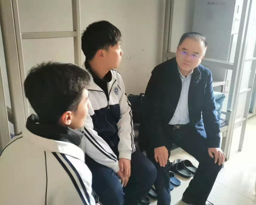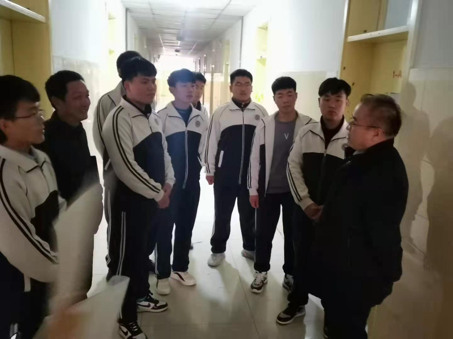 交谈中,于豪胜详细询问了在场学生的姓名、家庭情况、在校学习生活情况,在学校是不是住的习惯,饭菜是否可口,对宿舍维修和就餐秩序是否满意,对宿舍文化建设还有没有其它更好的建议。期间,于豪胜认真倾听了学生的意见和建议,对有些具体问题当即予以了细致解答。最后,于豪胜嘱咐同学们要注意防寒保暖,做好个人卫生,养成良好的生活习惯,勤奋学习,做一名有理想、有担当的社会主义接班人。