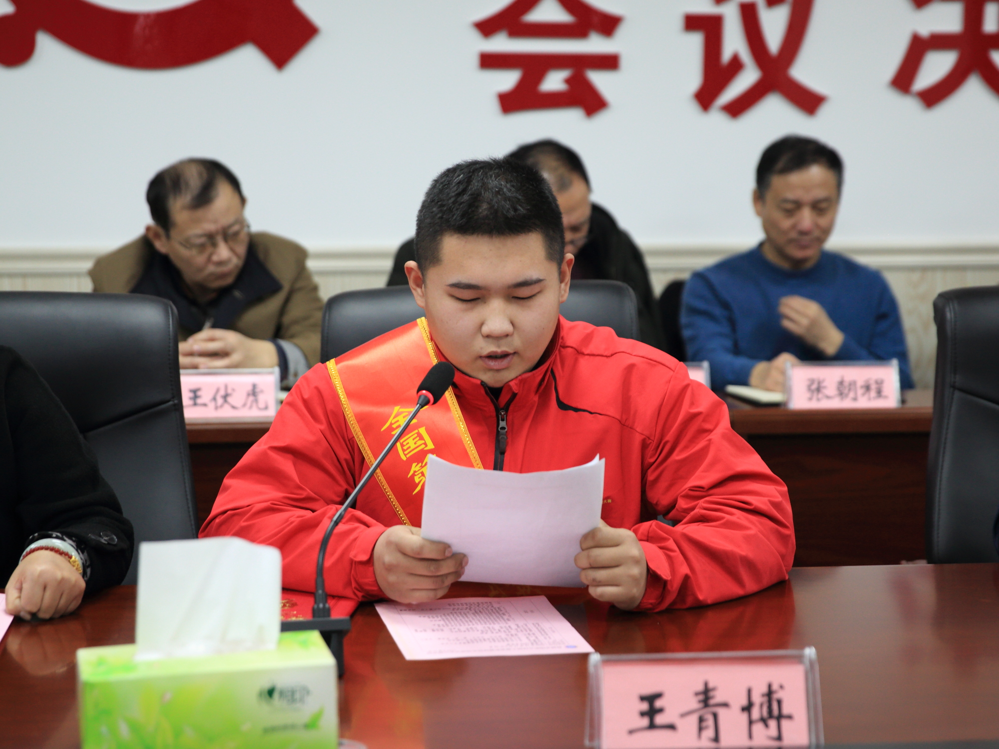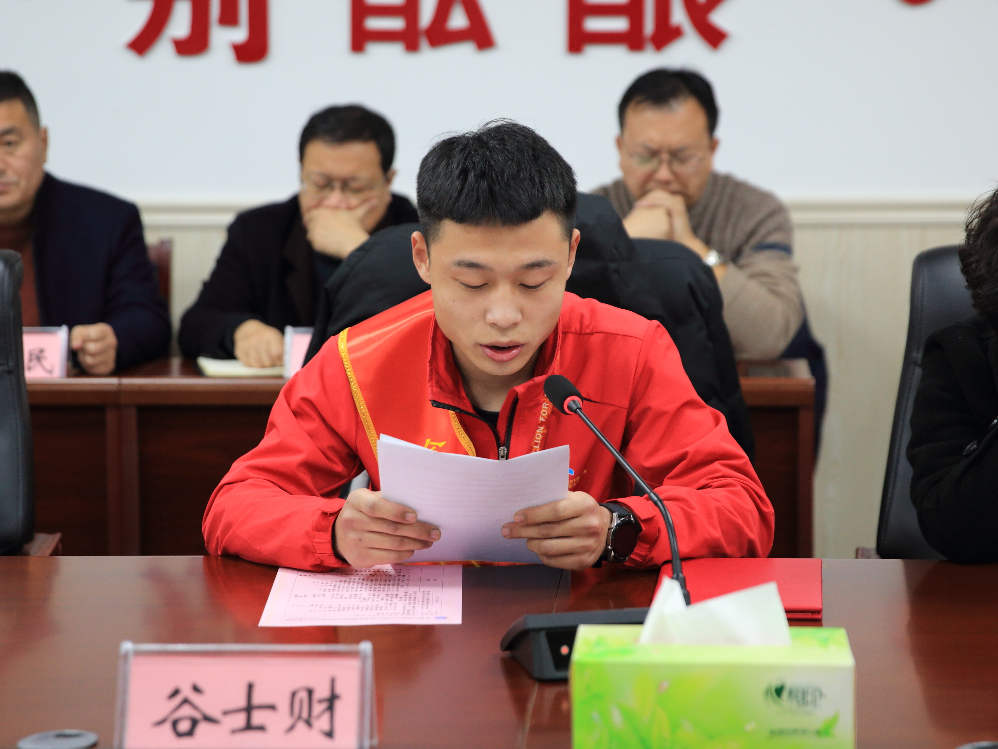 获奖学生王青博、谷士财,指导教师李明先后发言。他们结合各自经历回忆从积极备赛到赛场拼杀的点点滴滴,引发现场人员强烈共鸣。现场人员被他们的事迹所感动,对其顽强拼搏的精神和行为表示赞赏。