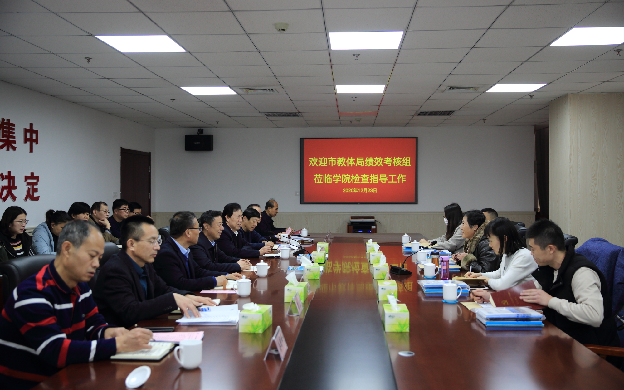 按照聊城市委统一部署,12月23日,以聊城市教育和体育局总督学、三级调研员郝晓萍为组长,学校组织科科长母凤鸣、职业教育与民继教育科副科长于伟、学校组织科于凡凡、学校人事科丁璇为组员的绩效考核组来我院进行年终考核。党委书记张连臣主持汇报会,党委副书记、院长刘德云及党政班子成员出席会议,学院纪委、组织人事处、宣传处和有关处室主要负责任人参加会议。