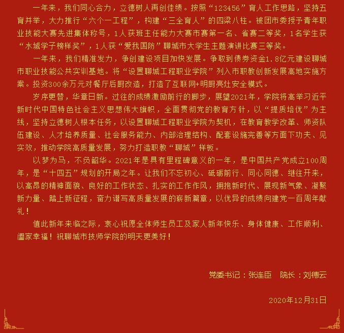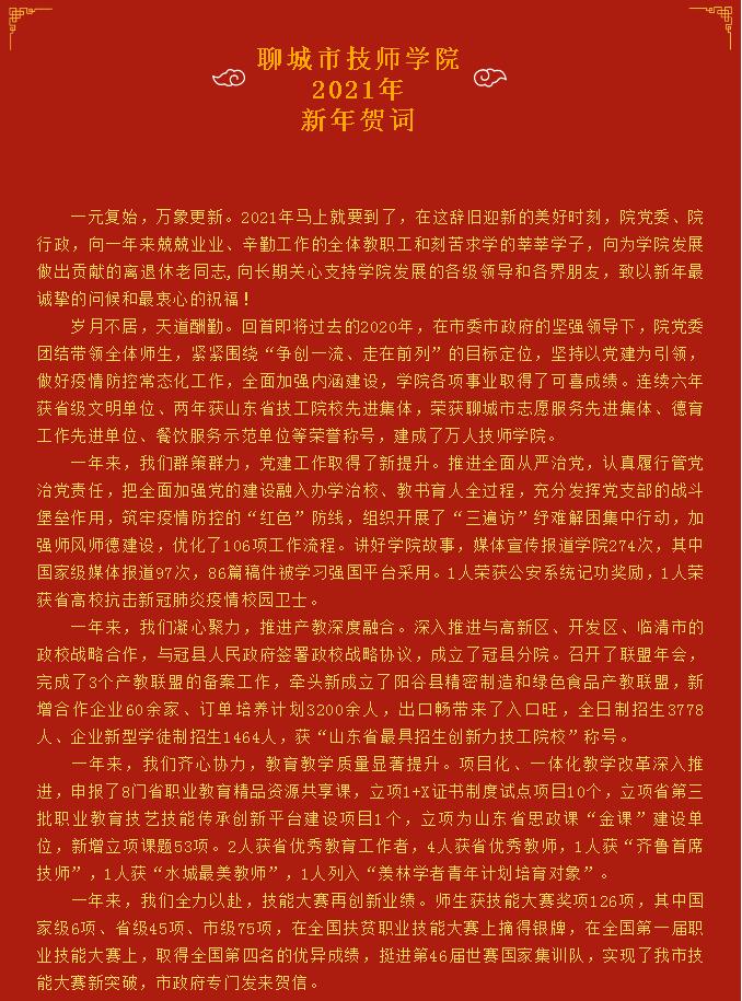 奋进“十四五” 开启新征程丨聊城市技师学院2021年新年贺词