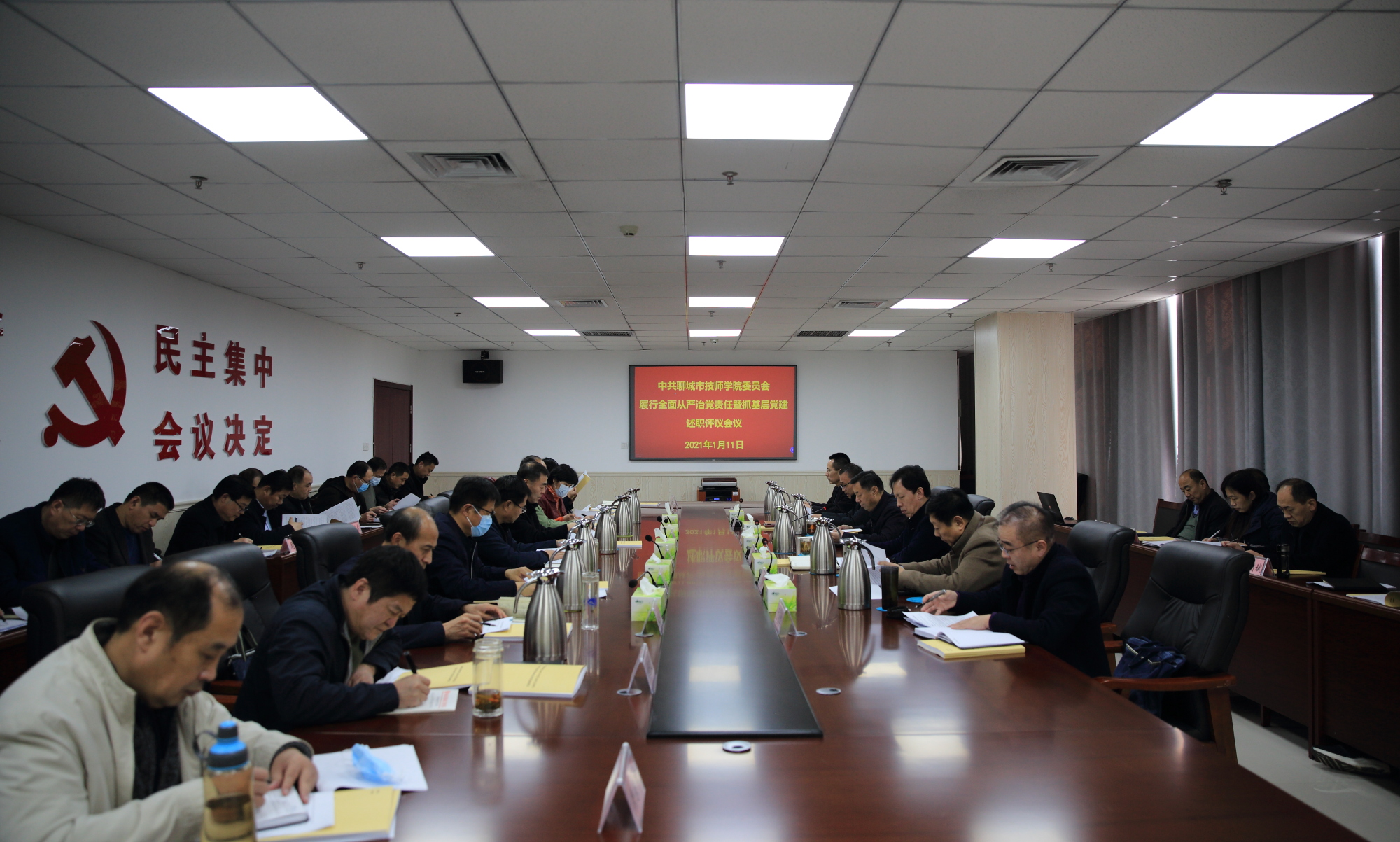 1月11日下午,学院召开2020年度履行全面从严治党责任和抓基层党建述职评议会议。党委书记张连臣主持会议并讲话,党政班子成员出席会议,26个党支书记参加会议。