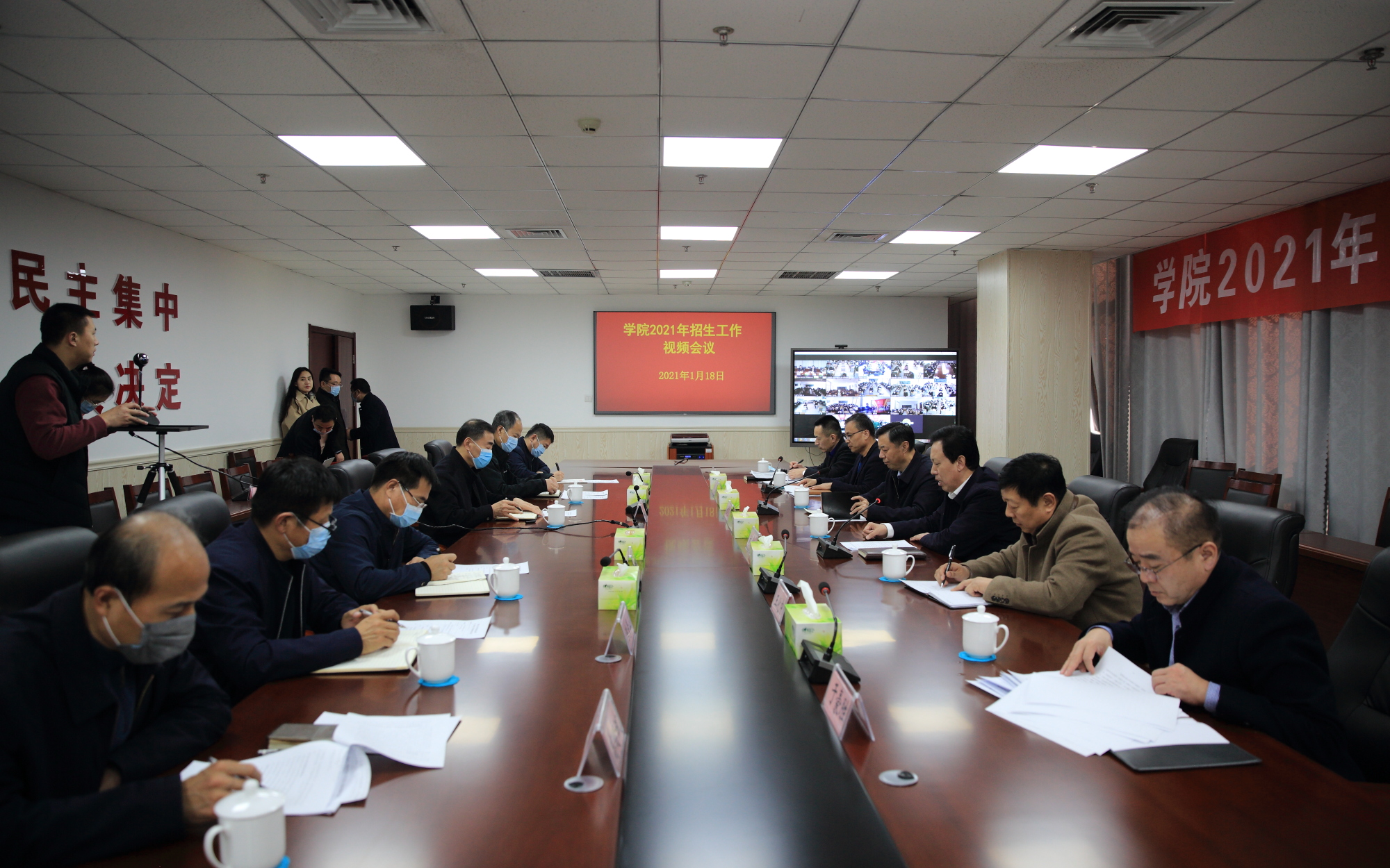 1月18日下午,学院召开2020年招生表彰大会暨2021年招生工作安排视频会议。党委书记张连臣出席会议并讲话,党委副书记、院长刘德云,学院党政领导班子成员在主会场就坐,会议由刘德云主持。各单位教职员工在各分会场收听收看会议。