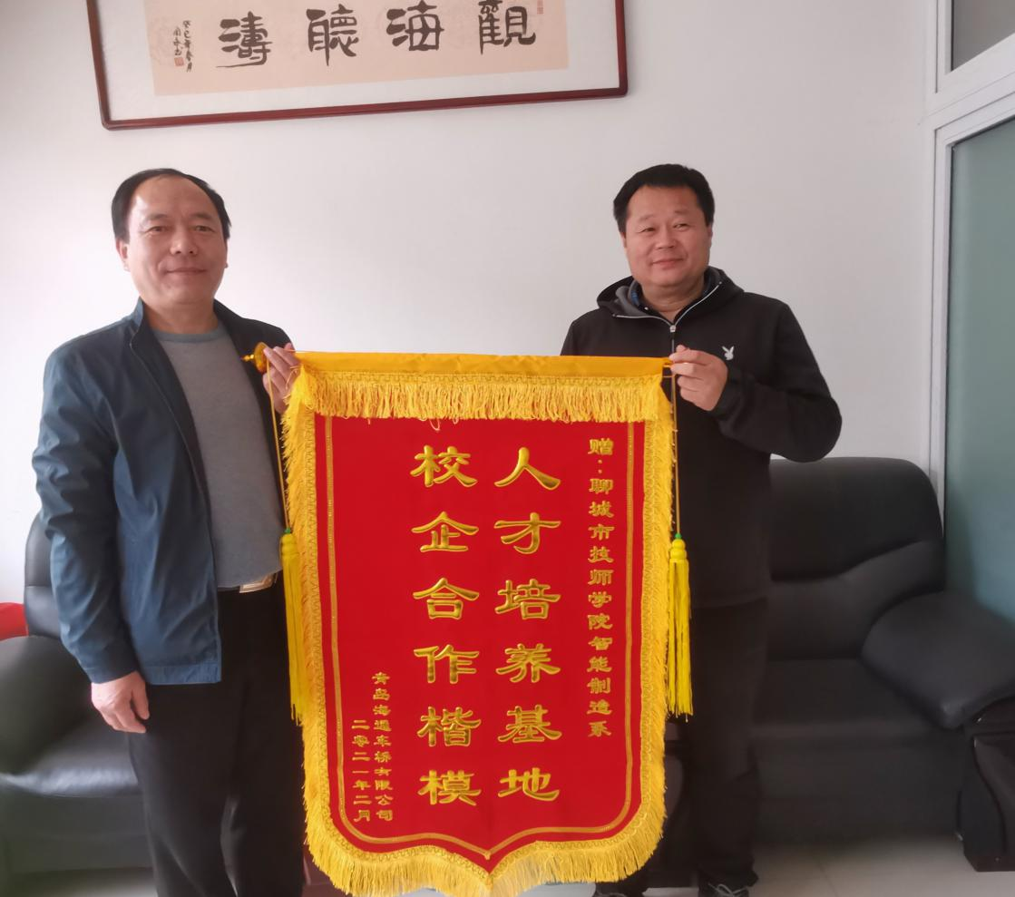 3月18日下午,智能制造系收到了一面青岛海通车桥有限公司赠送的锦旗:“人才培养基地,校企合作楷模”。