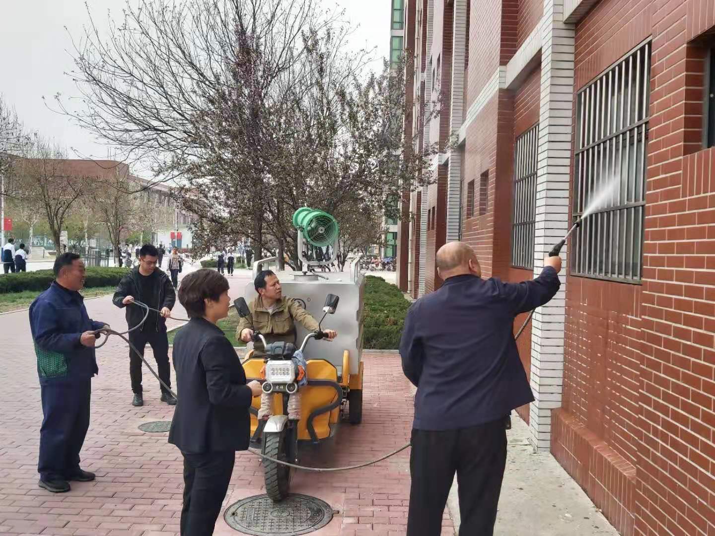 活动中,每位党员教师与物业人员对各公寓楼1楼外窗进行喷擦,真正为他们做好事,暖心事。党员教师在行动中做好引领示范,通过实际行动认真做好学生的思想引领工作,激发他们内心向上、向善的正能量。