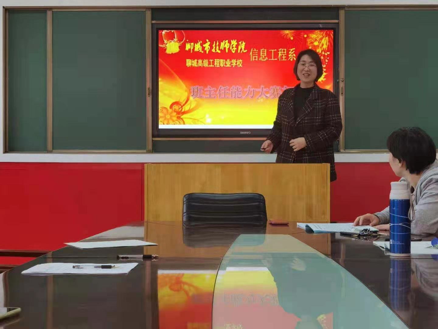 4月2日下午,信息工程系在行知楼207教室举办班主任能力大赛。比赛共分班级建设方案展示、德育活动设计、情景答辩三个环节,既考查班主任建班育人的专业理念及素养,又体现班主任在活动过程的教育性及完整性。选手们拿出看家本领,从教育学、心理学角度进行个案剖析,如何引导教育中职学生成长成才、做好班级管理工作。比赛中出色的演讲答辩、冷静的问题分析,获得了大家的一致共鸣。