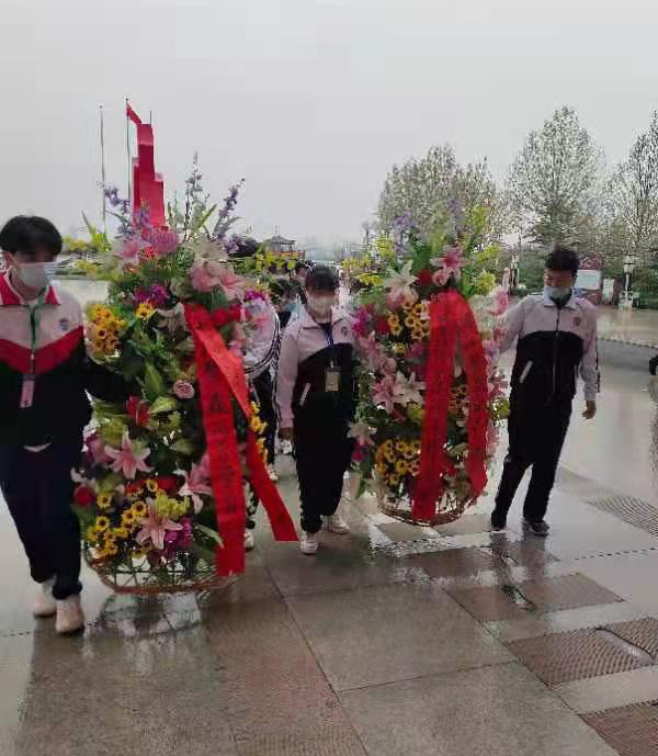 在孔繁森同志塑像前,师生静默肃立,向英烈敬献花篮,鞠躬默哀,庄严宣誓。随后,大家集体观看视频教育片《清贫的力量》。