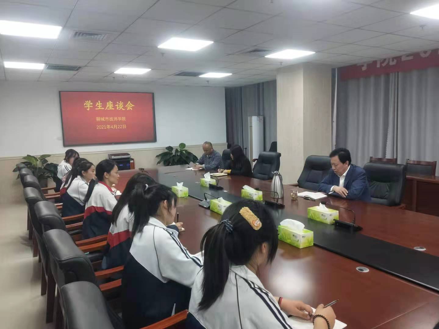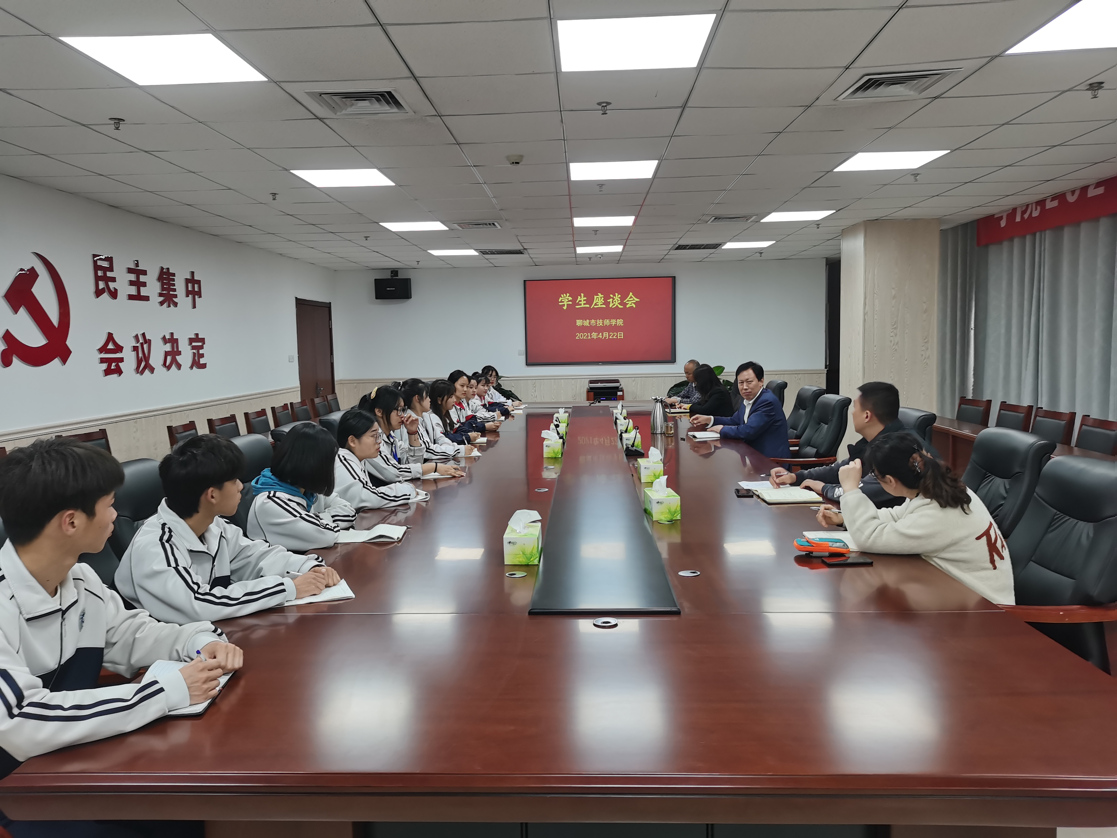 会上,学生代表结合自身专业特点,就学习情况、校园环境、后勤服务、宿舍管理以及学生社团活动等方面畅所欲言,为学院的发展建言献策。刘德云对学生提出的建议一一解答,对存在的问题,安排相关处室负责人立即进行整改。