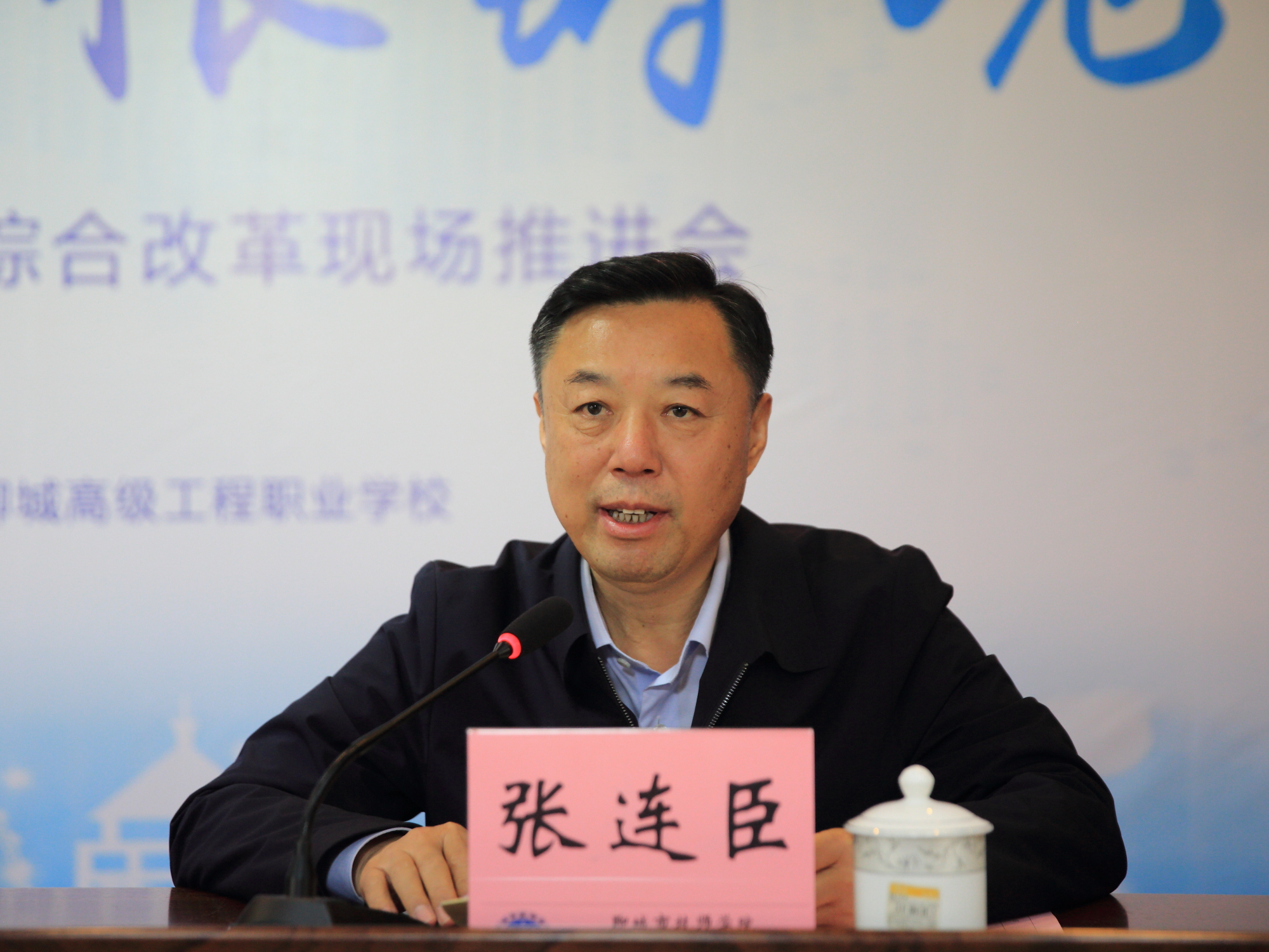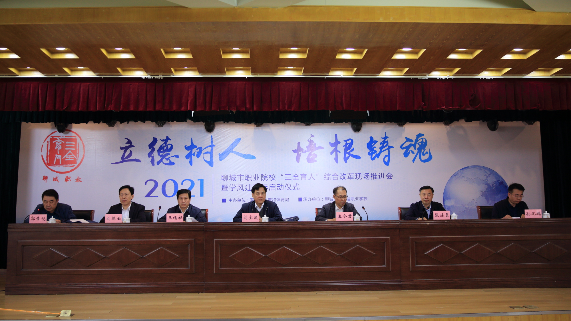 4月30日,聊城市职业院校“三全育人”综合改革现场推进会暨学风建设年启动仪式在我校隆重举行。教育部职业技术教育中心研究所副所长、中国职业技术教育学会德育工作委员会副主任刘宝民,山东省教育厅二级调研员孟令君,聊城市教育和体育局党组书记、局长王福祥,聊城高级工程职业学校党委书记张连臣,党委副书记、院长刘德云,聊城市委政研室副主任孙化鹏,市教体局职教科负责人、各县(市、区)教体局主要领导、分管领导及职教科负责人;各职业院校主要领导、分管领导、学生科(处)负责人及班主任代表;聊城高级工程职业学校副科级以上干部及班主任参加会议。会议由聊城市教育和体育局四级调研员郭章记主持。聊城高级工程职业学校党委书记张连臣致欢迎词,并介绍了学校基本情况和主要办学做法。
