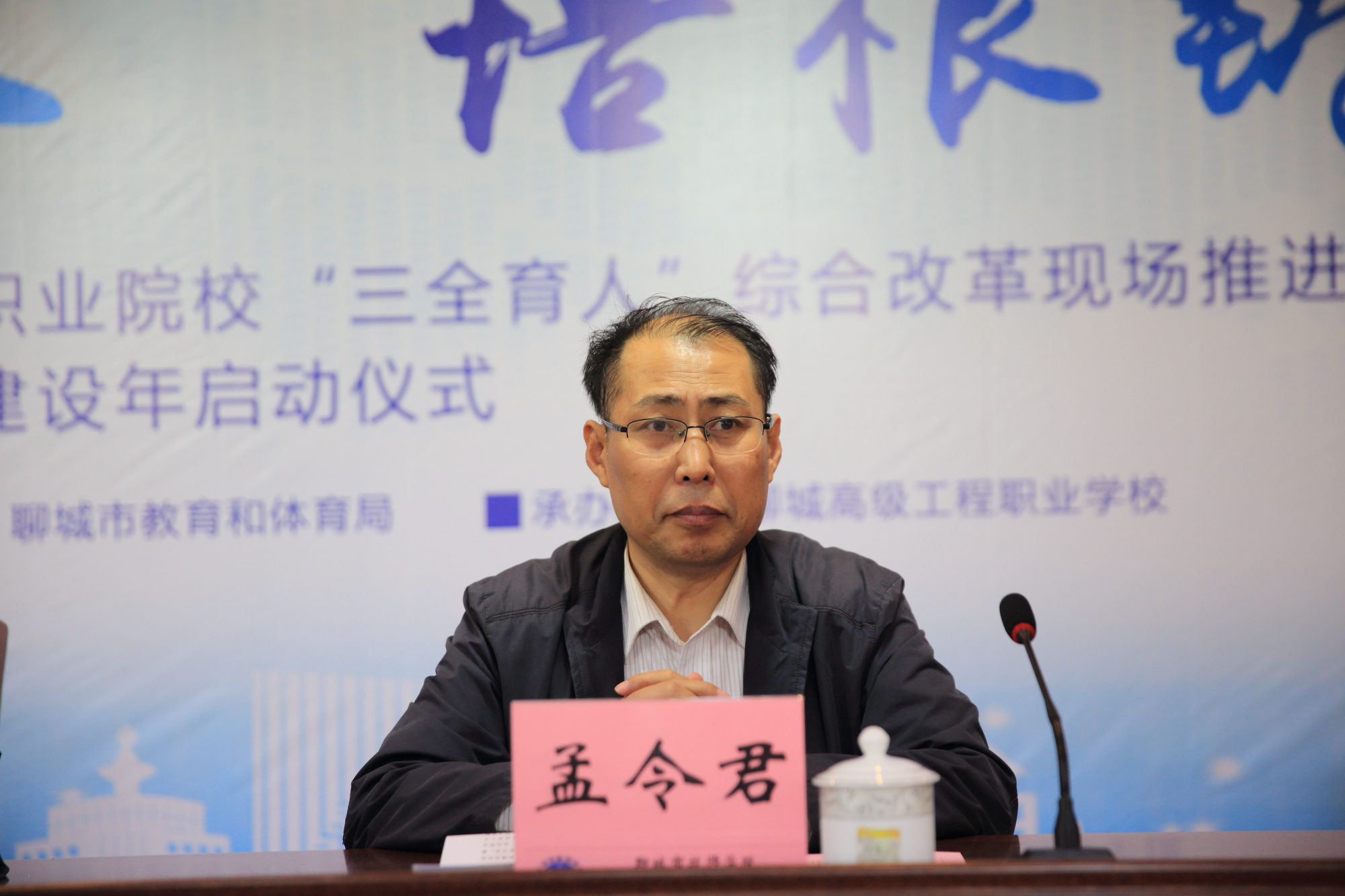 孟令君在大会上讲话,代表省教育厅对大会召开表示祝贺。他指出,山东职业教育一直走在全国的前列,部省共建国家职业教育创新发展高地建设已经“全面起势”,各项工作正在扎实有序推进。下一步将聚焦“培养什么人、怎样培养人、为谁培养人”,在如何构建职业教育“三全育人”新格局、让思政工作更有温度、更有感染力上狠下功夫,努力摸索出一条特色鲜明、针对性强、有感染力的“鲁味”职教“三全育人”路径。他强调,聊城职业院校要围绕新时代特征、需求和职业院校学生存在的突出问题,立足区域丰富的育人资源,着力推动育人资源力量的联通、贯通、融通,搭建“三全育人”的“四梁八柱”,凝练特色,打造精品思政品牌,形成一校一品、百花齐放的育人局面,培养更多高素质技术技能人才、能工巧匠、大国工匠。