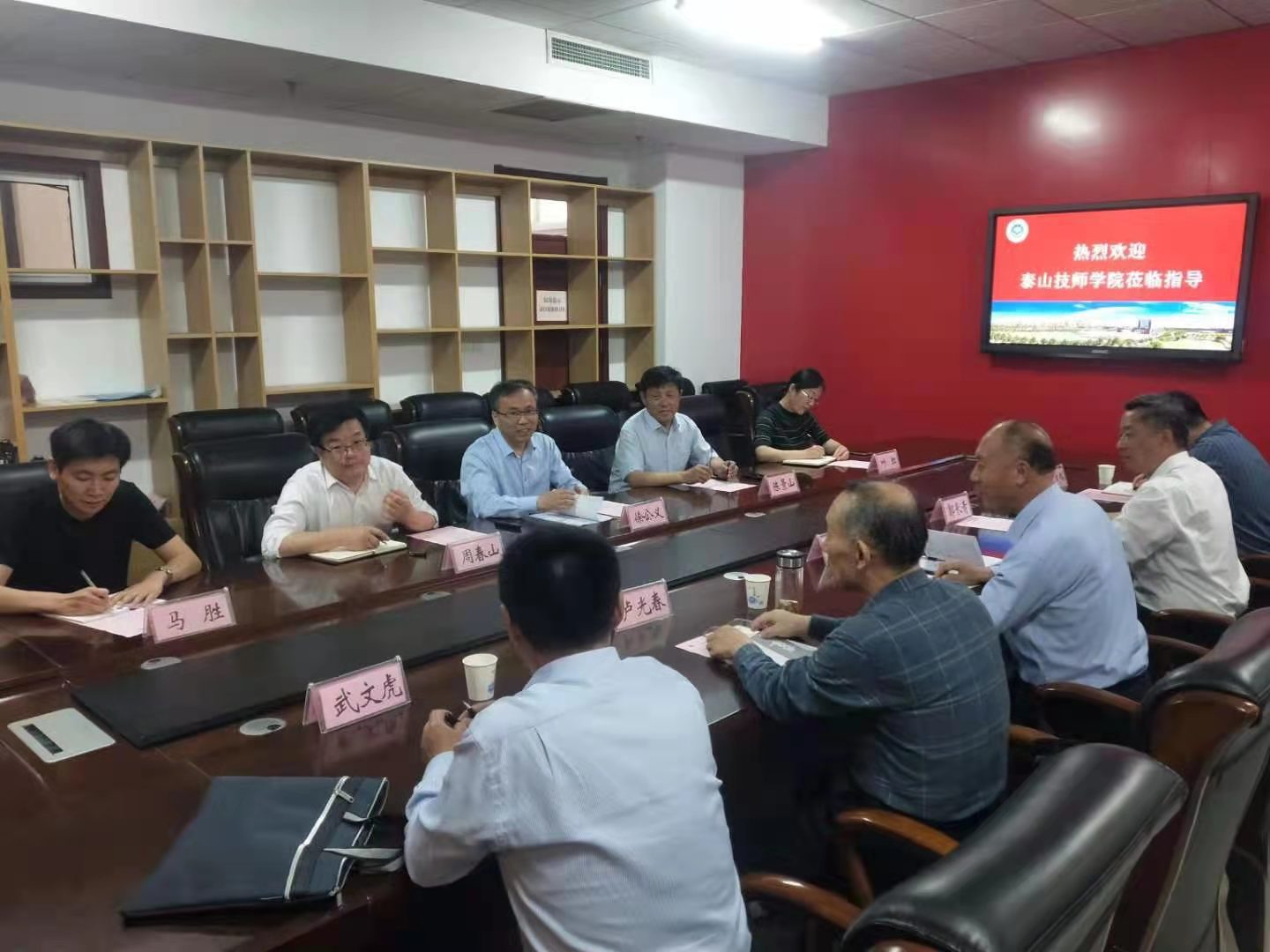 5月12日,泰山技师学院党委副书记温令自一行5人来院参观交流。学院党委副书记徐公义、党委委员陈景山及有关部门负责同志参加活动。
