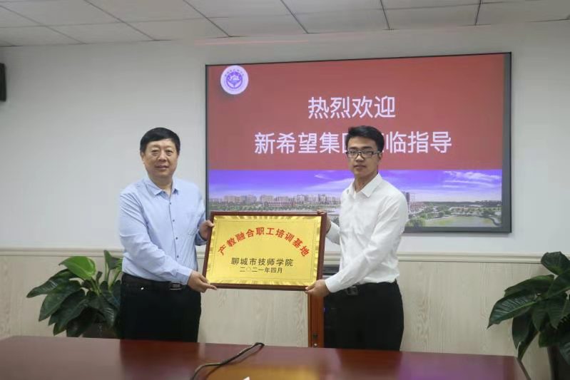 5月15日上午,学院与新希望集团举行校企合作签约及聊城市技师学院产教融合职工培训基地授牌仪式。新希望六和股份有限公司人力资源部总经理王艳龙,新好科技鲁西北战区公共事务部总经理王永全、新好科技东阿公司总经理刘文信,学院党委委员、副院长王化中及相关部门负责同志参加仪式。