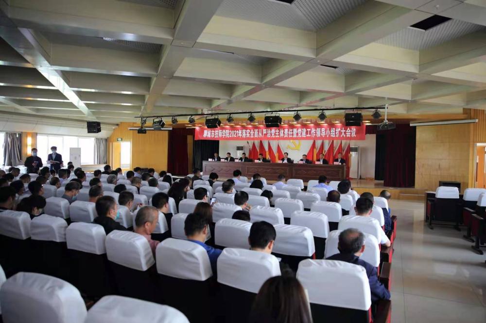 5月21日,学院召开2021年落实全面从严治党主体责任暨党建工作领导小组扩大会议,传达中央省市纪委全会暨全省教育系统全面从严治党工作会议精神,总结学院2020年党建工作,安排部署学院2021年全面从严治党工作。学院党委书记张连臣讲话,党委副书记、院长刘德云主持会议,全体领导班子成员,各支部书记及副科级以上干部参加会议。