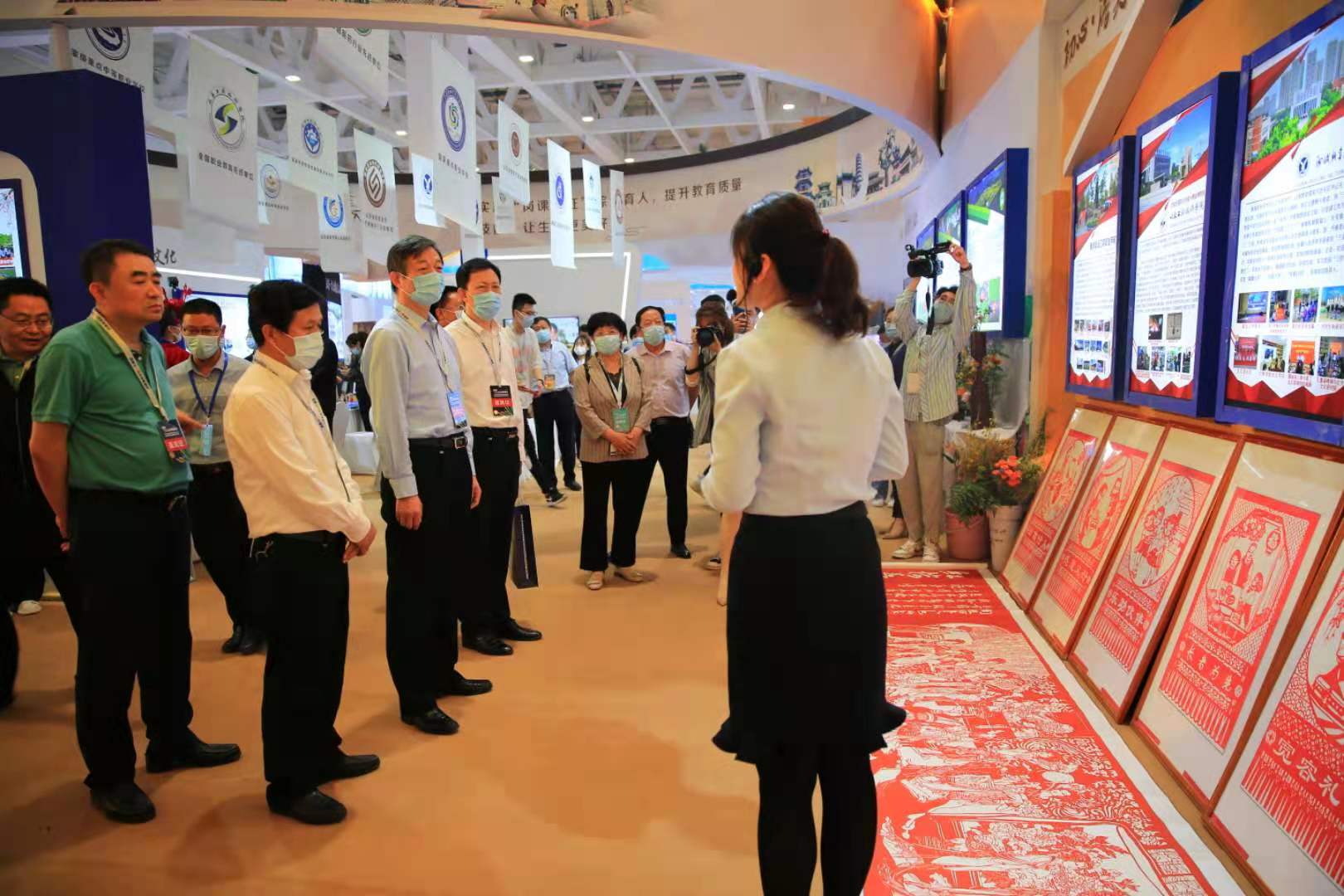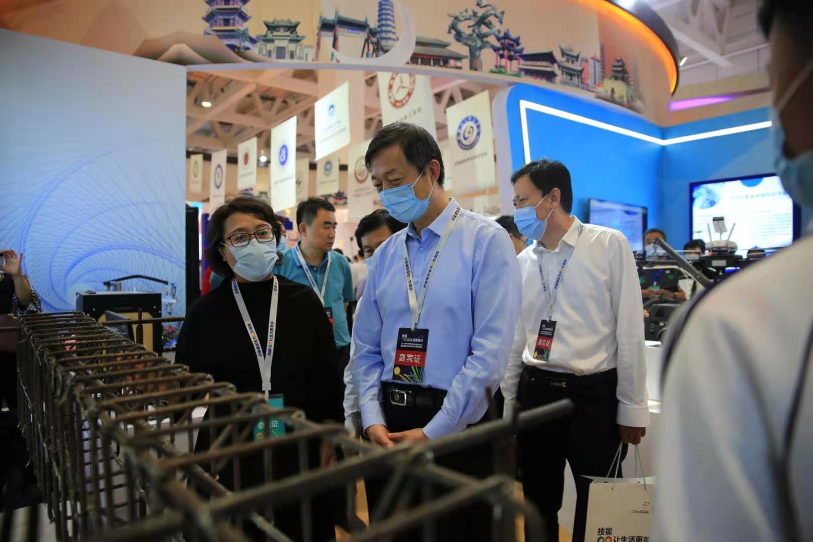 聊城高级工程职业学校超前策划,精心布置了“艺筑梦”剪纸、3D打印、无人机、直播带货等特色项目展示,曾获全国扶贫银奖的“扎钢筋工件”也亮相现场,吸引众多观者驻足。