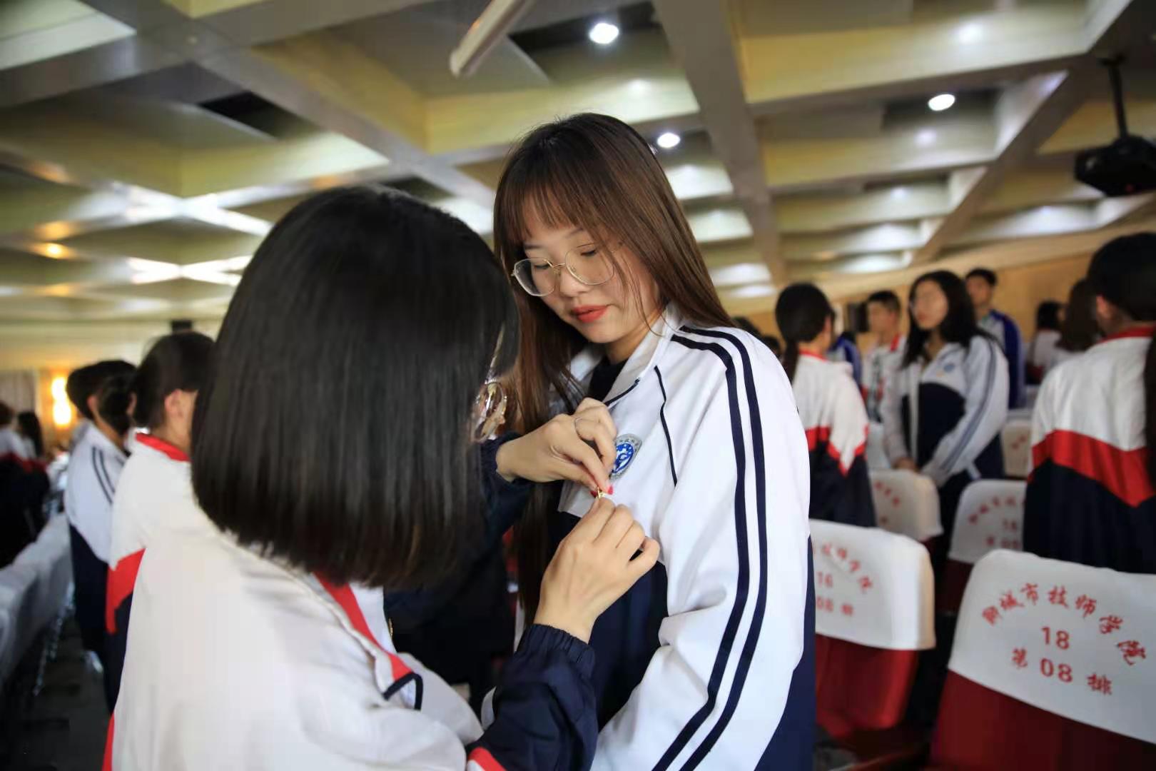 入团仪式在庄严嘹亮的国歌中正式开始。仪式上首先宣读了新团员名单。学院领导和老团员为新团员佩戴团徽。随后,新团员进行入团宣誓,老团员重温入团誓词。铮铮誓言,高亢雄浑,表达了共青团员们愿意用热情和责任为组织增光添彩的豪情,愿意用青春和奉献实现永远跟党走的使命担当。