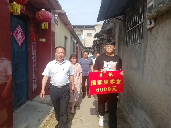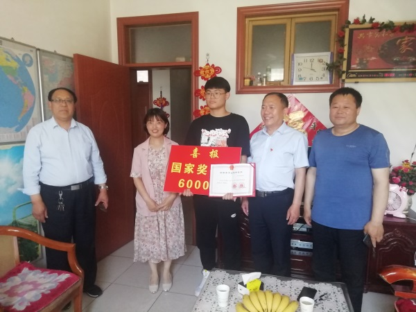 为有效发挥国家奖学金对学生的激励作用,搭建家校合力育人平台,6月1日下午,智能制造系主任周文一行先后来到国家奖学金获得者王占峰、孙兴涛家中,郑重地将国家奖学金证书和6000元奖学金递到家长手中。