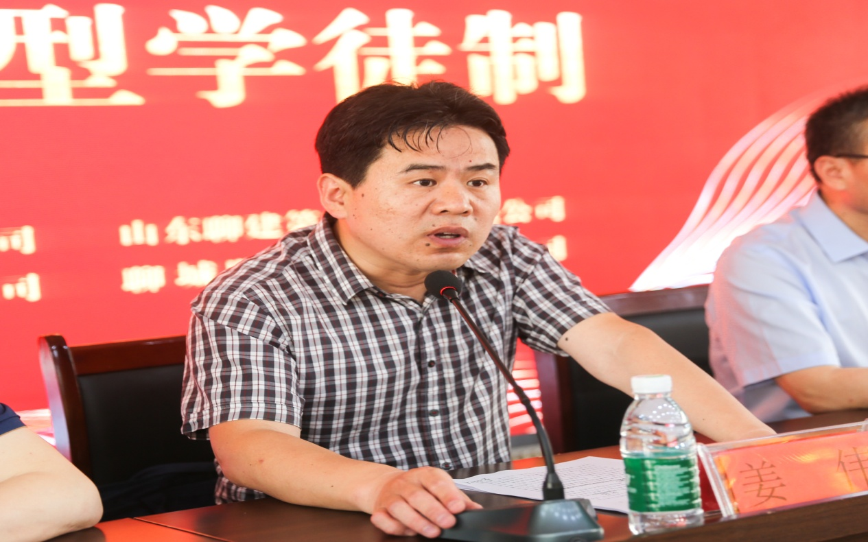 姜伟在仪式上讲话时对本次校企合作给予高度评价,他说,聊建集团与市技师学院合作开展的新型学徒制培训是人才培养模式的重大创新。校企要用好双方的优质资源,采取车间+教室互动培训教学,集中学、分散学、掌中学、网上学等新型培训模式,不断探索创新培训模式。