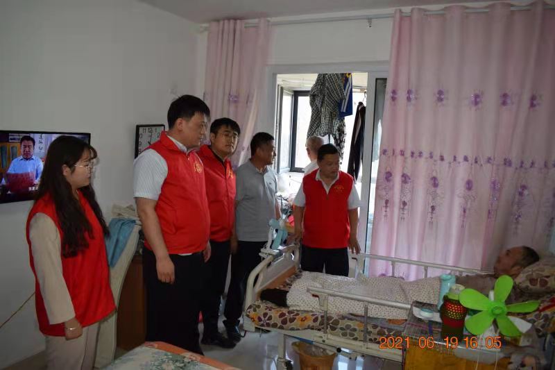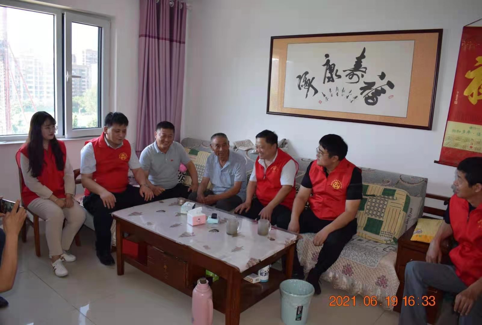 为迎接中国共产党百年华诞,深入推进党史学习教育,6月19日下午,培训部党支部书记王维林带领全体党员带着米面油等生活用品赴“三遍访”定点走访小区——军王屯居民小区走访慰问老党员。