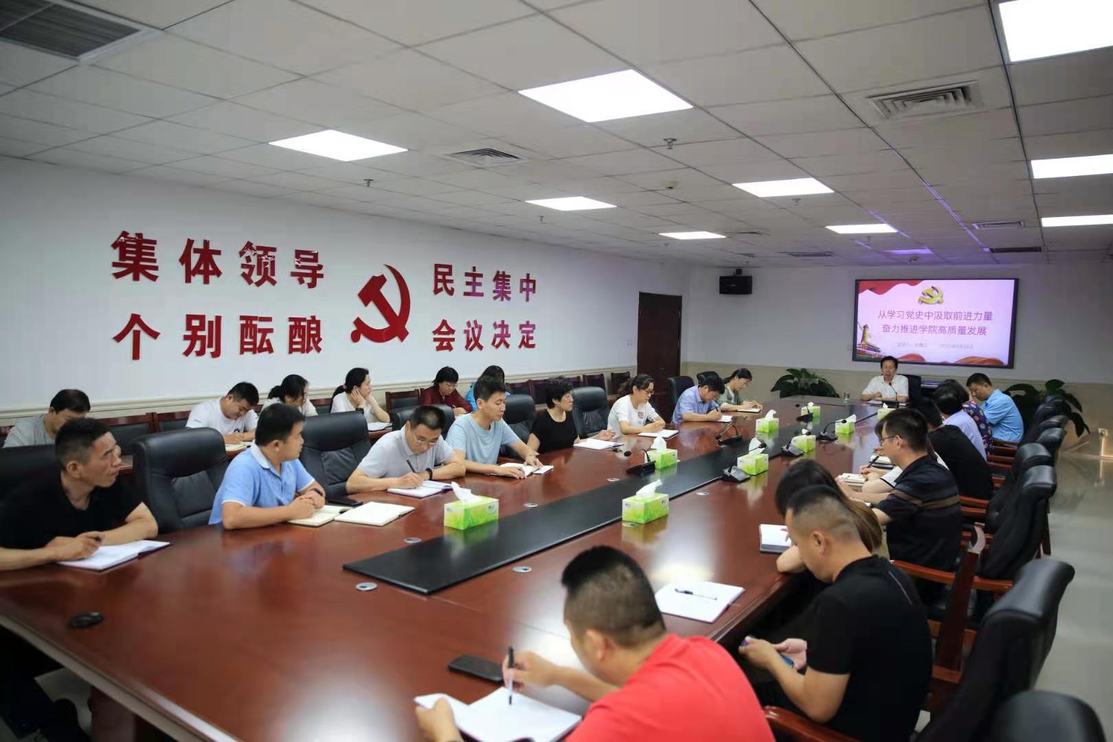 刘德云指出,今年是中国共产党成立100周年。在全党开展党史学习教育,是以习近平同志为核心的党中央立足党的百年历史新起点、统筹中华民族伟大复兴战略全局和世界百年未有之大变局、为动员全党全国满怀信心投身全面建设社会主义现代化国家而作出的重大决策。办公室、组织人事处、宣传处作为学院的党委部门、窗口单位,要带头学史明理、学史增信、学史崇德、学史力行,奋力推进学院各项工作高质量发展。