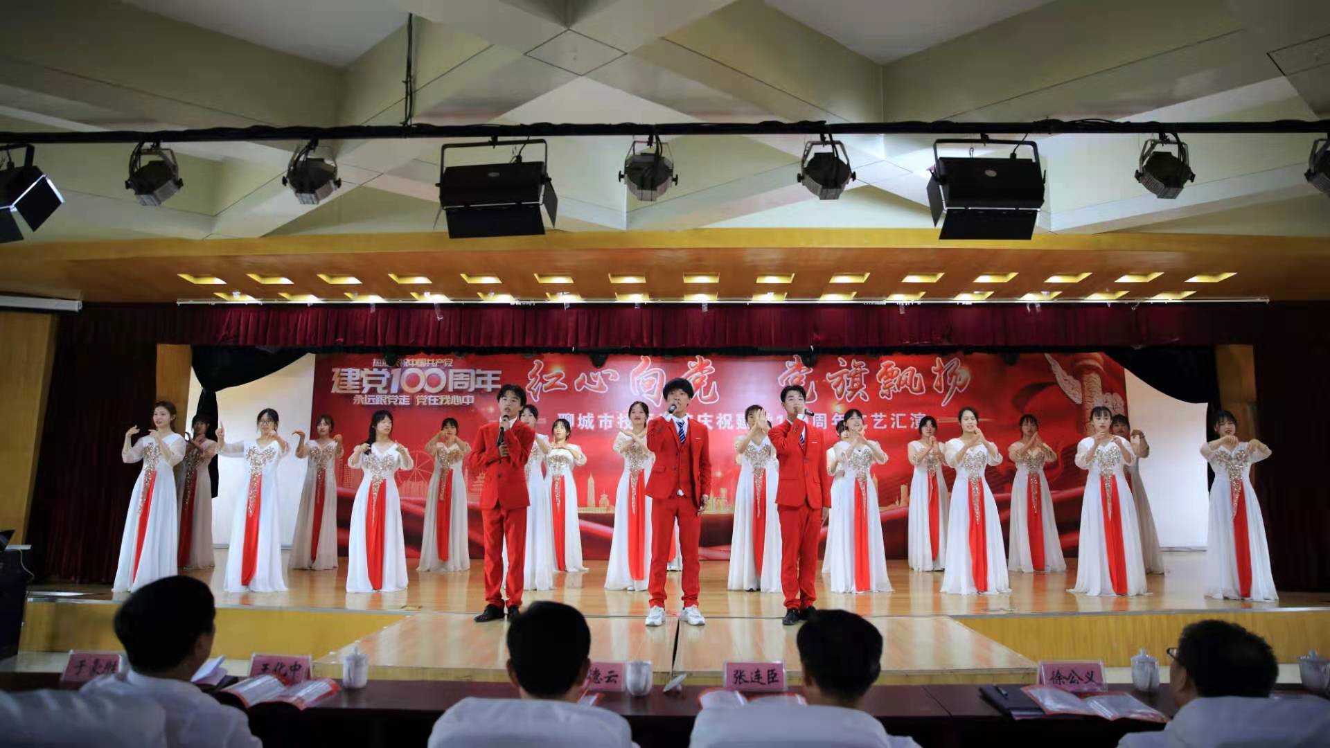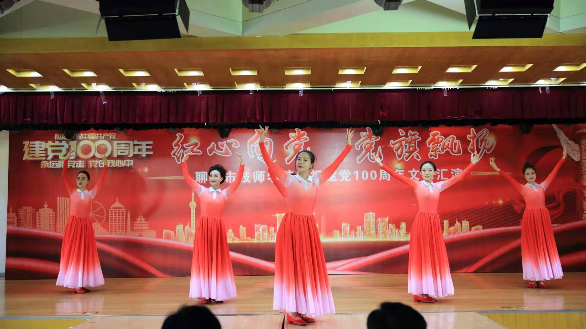 为庆祝党的百年华诞,深情回顾党的百年奋斗历程,热情讴歌党的百年光辉业绩,继承和发扬党的光荣传统和优良作风,6月28日,聊城市技师学院隆重举行庆祝建党100周年文艺汇演。学院党委书记张连臣,党委副书记、院长刘德云等领导班子全体成员一起登台引吭高歌,用真情唱响红色经典,歌颂伟大的中国共产党,庆祝中国共产党百年华诞,向党的生日献上最诚挚的祝福。
