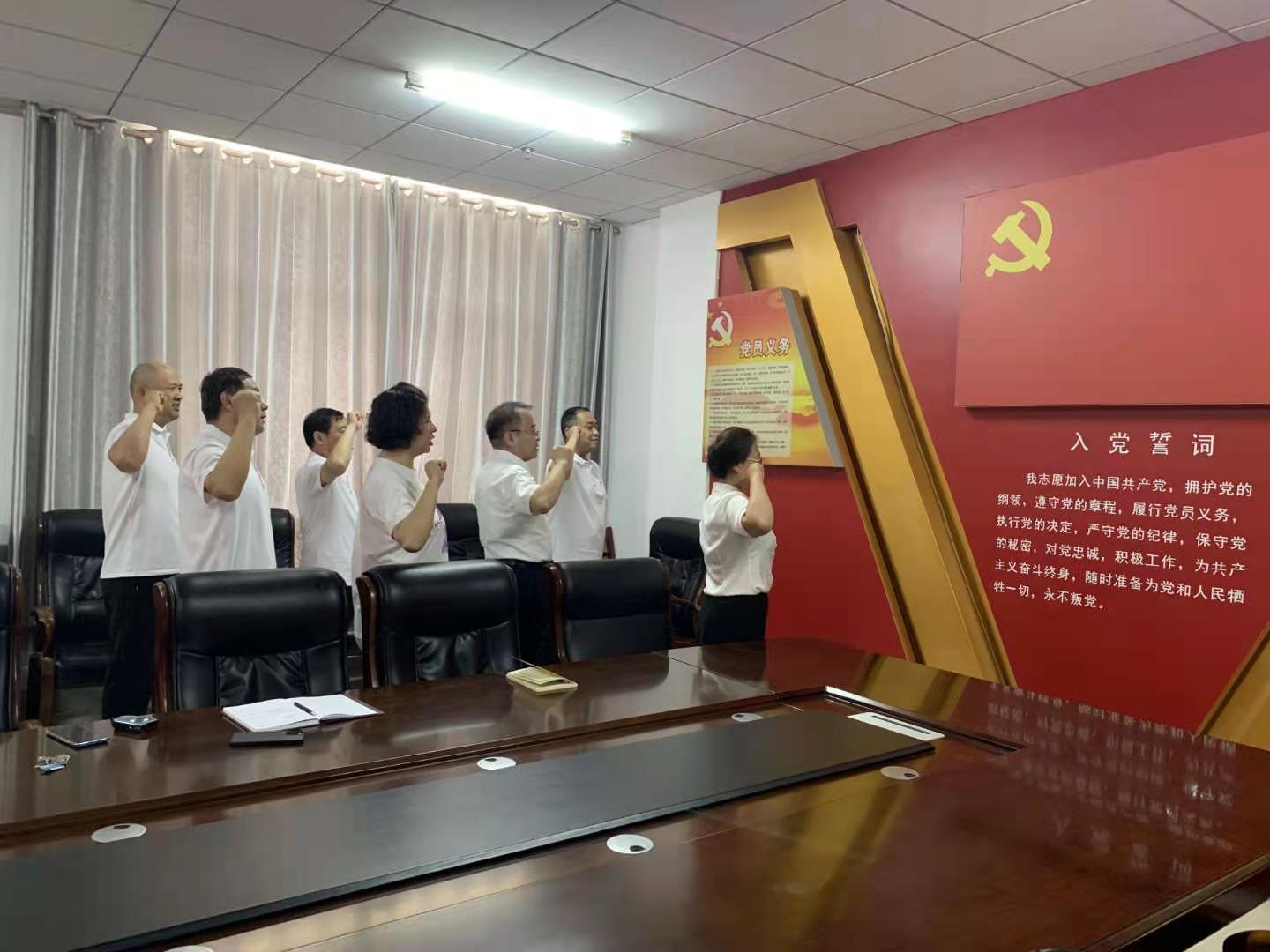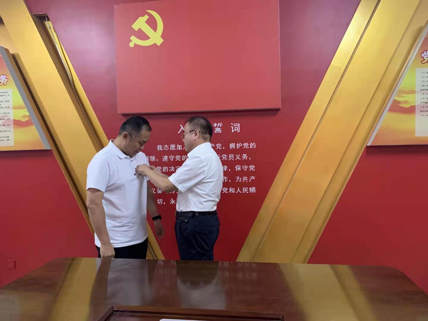 随后,于豪胜同志为党员代表佩戴党徽。魏杨林同志带领全体党员面向党旗,庄严宣誓,重温入党誓词。