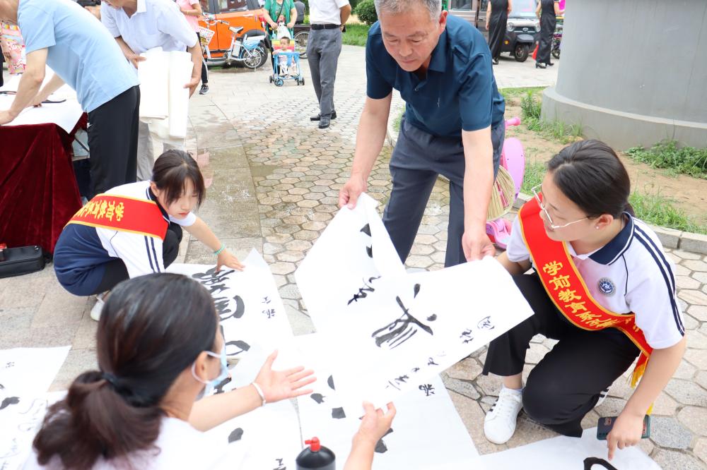 本次文艺演出为社区居民们带来了一场歌颂党恩的文化盛宴:书法名家现场挥毫书写对党的祝福,红色歌曲、红色戏曲、红色舞蹈轮番表演,学前教育系陈玥、郑军等教师带来《永远跟党走》朗诵节目……精彩纷呈的节目带领居民们回顾党的光辉历史,感悟红色精神,引发了居民的强烈共鸣。