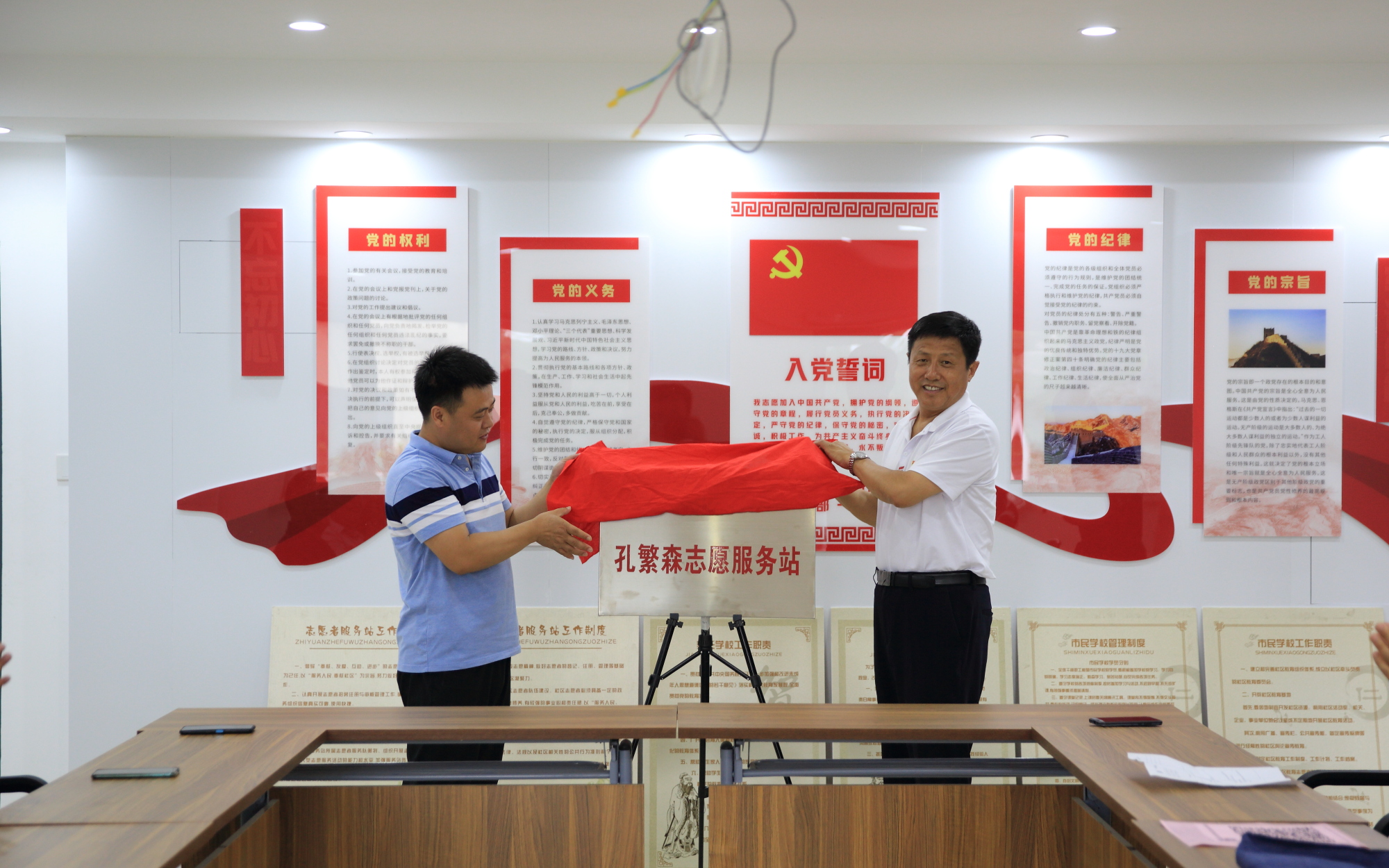 为深入推进全国文明城市创建工作,扎实开展“我为群众办实事”实践活动,弘扬志愿服务精神,7月12日上午,学院与柳园街道办事处平安社区在社区新时代文明实践站举行了“聊城市技师学院孔繁森志愿服务站”揭牌仪式,学院党委委员陈景山、平安社区书记李强共同为“聊城市技师学院孔繁森志愿服务站”揭牌。